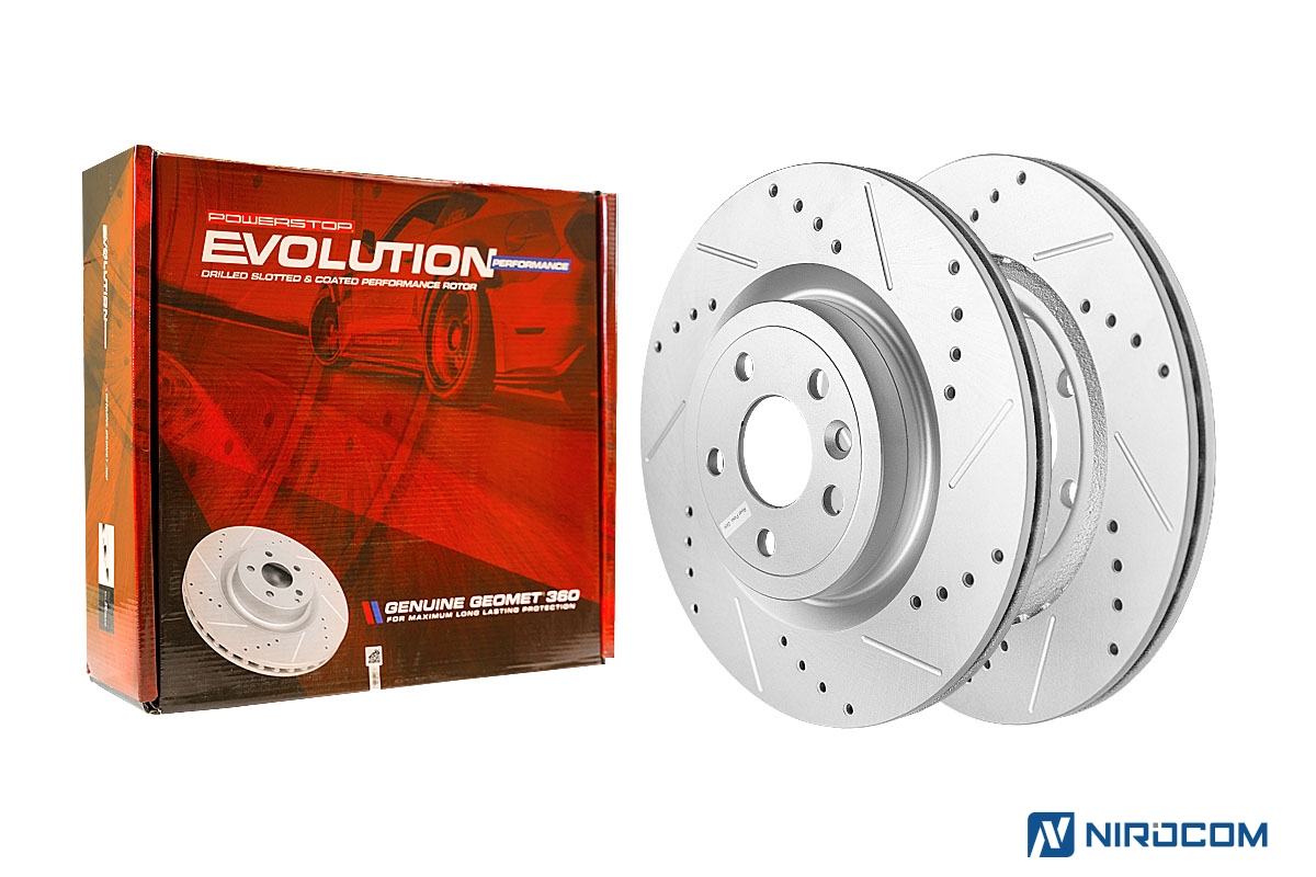 Тормозные диски PowerStop Evolution выполнены из чугуна с повышенным содержанием хрома и никеля. Слоты и перфорация служат как для охлаждения, так и для улучшения коэффициента трения и эффективной работы в различных внешних условиях. Лучшее решение для динамичной и спортивной манеры езды и несравнимая стойкость к перегреву. Все тормозные диски PowerStop Evolution спроектированы в полном соответствии с оригинальными размерами и спецификациями. Прецизионная лазерная чистовая обработка гарантирует их простую и быструю установку, а также безотказную работу на протяжении всего срока службы. Весь тормозной диск, включая внутренние лопасти покрыт запатентованным составом GEOMET® (смесь с использованием дихромата серебра и цинка) которое чрезвычайно стойко к окислению и коррозии, не влияя при этом на эффективность торможения.