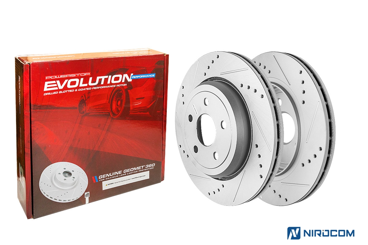 Тормозные диски PowerStop Evolution выполнены из чугуна с повышенным содержанием хрома и никеля. Слоты и перфорация служат как для охлаждения, так и для улучшения коэффициента трения и эффективной работы в различных внешних условиях. Лучшее решение для динамичной и спортивной манеры езды и несравнимая стойкость к перегреву. Все тормозные диски PowerStop Evolution спроектированы в полном соответствии с оригинальными размерами и спецификациями. Прецизионная лазерная чистовая обработка гарантирует их простую и быструю установку, а также безотказную работу на протяжении всего срока службы. Весь тормозной диск, включая внутренние лопасти покрыт запатентованным составом GEOMET® (смесь с использованием дихромата серебра и цинка) которое чрезвычайно стойко к окислению и коррозии, не влияя при этом на эффективность торможения.
