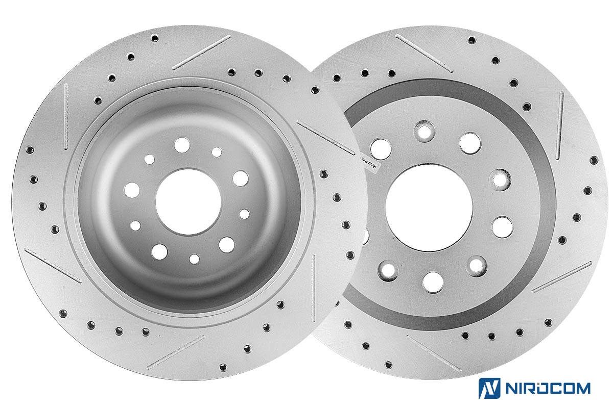 • характеристики тормозных дисков: потенциал рассеивания тепла может по-разному влиять на диски в зависимости от того, вентилированные они или нет, имеется ли перфорация, насечки;