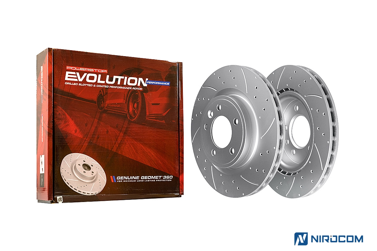 Тормозные диски PowerStop Evolution выполнены из чугуна с повышенным содержанием хрома и никеля. Слоты и перфорация служат как для охлаждения, так и для улучшения коэффициента трения и эффективной работы в различных внешних условиях. Лучшее решение для динамичной и спортивной манеры езды и несравнимая стойкость к перегреву. Все тормозные диски PowerStop Evolution спроектированы в полном соответствии с оригинальными размерами и спецификациями. Прецизионная лазерная чистовая обработка гарантирует их простую и быструю установку, а также безотказную работу на протяжении всего срока службы. Весь тормозной диск, включая внутренние лопасти покрыт запатентованным составом GEOMET® (смесь с использованием дихромата серебра и цинка) которое чрезвычайно стойко к окислению и коррозии, не влияя при этом на эффективность торможения.