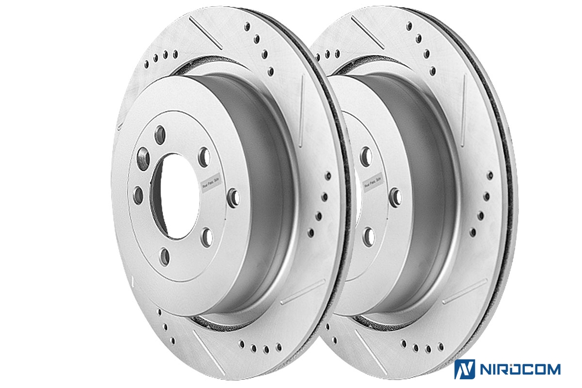 • характеристики тормозных дисков: потенциал рассеивания тепла может по-разному влиять на диски в зависимости от того, вентилированные они или нет, имеется ли перфорация, насечки;