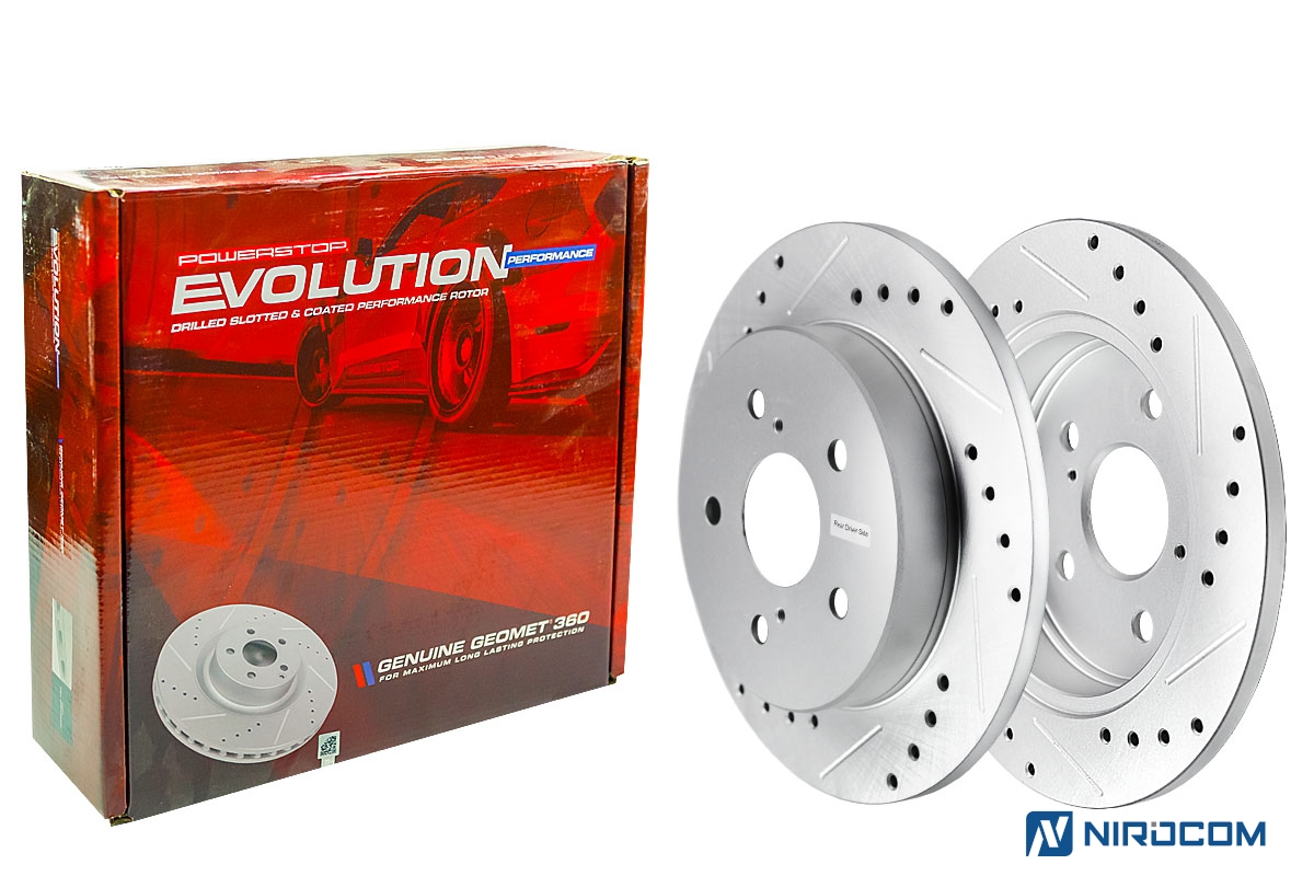Тормозные диски PowerStop Evolution выполнены из чугуна с повышенным содержанием хрома и никеля. Слоты и перфорация служат как для охлаждения, так и для улучшения коэффициента трения и эффективной работы в различных внешних условиях. Лучшее решение для динамичной и спортивной манеры езды и несравнимая стойкость к перегреву. Все тормозные диски PowerStop Evolution спроектированы в полном соответствии с оригинальными размерами и спецификациями. Прецизионная лазерная чистовая обработка гарантирует их простую и быструю установку, а также безотказную работу на протяжении всего срока службы. Весь тормозной диск, включая внутренние лопасти покрыт запатентованным составом GEOMET® (смесь с использованием дихромата серебра и цинка) которое чрезвычайно стойко к окислению и коррозии, не влияя при этом на эффективность торможения.