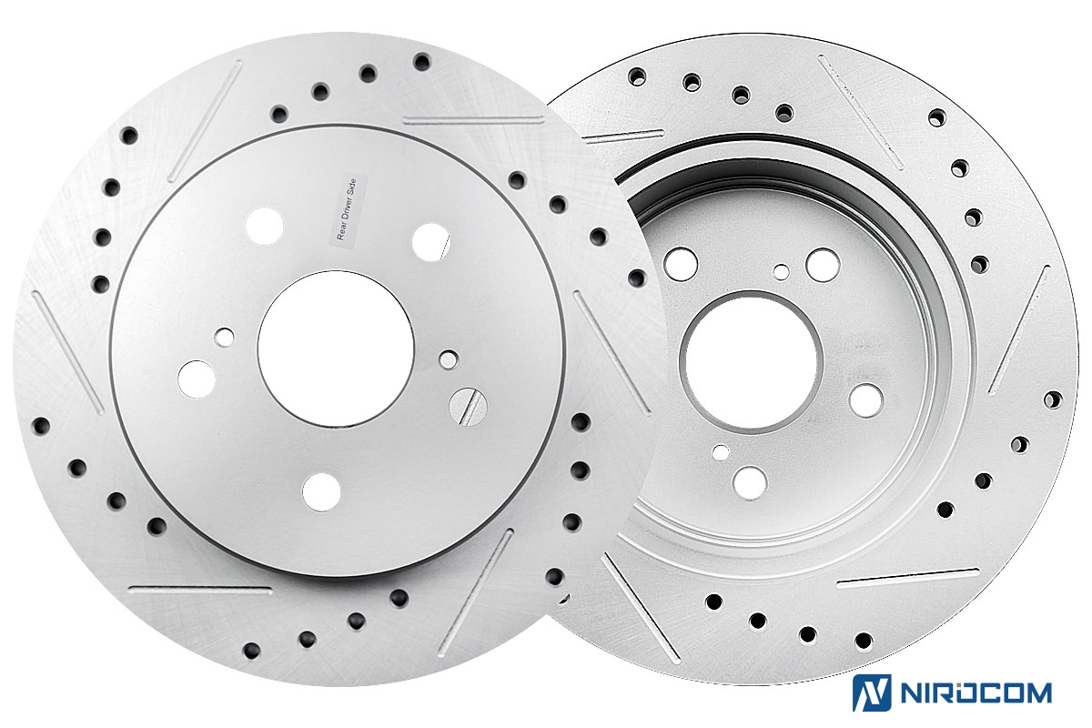 • характеристики тормозных дисков: потенциал рассеивания тепла может по-разному влиять на диски в зависимости от того, вентилированные они или нет, имеется ли перфорация, насечки;