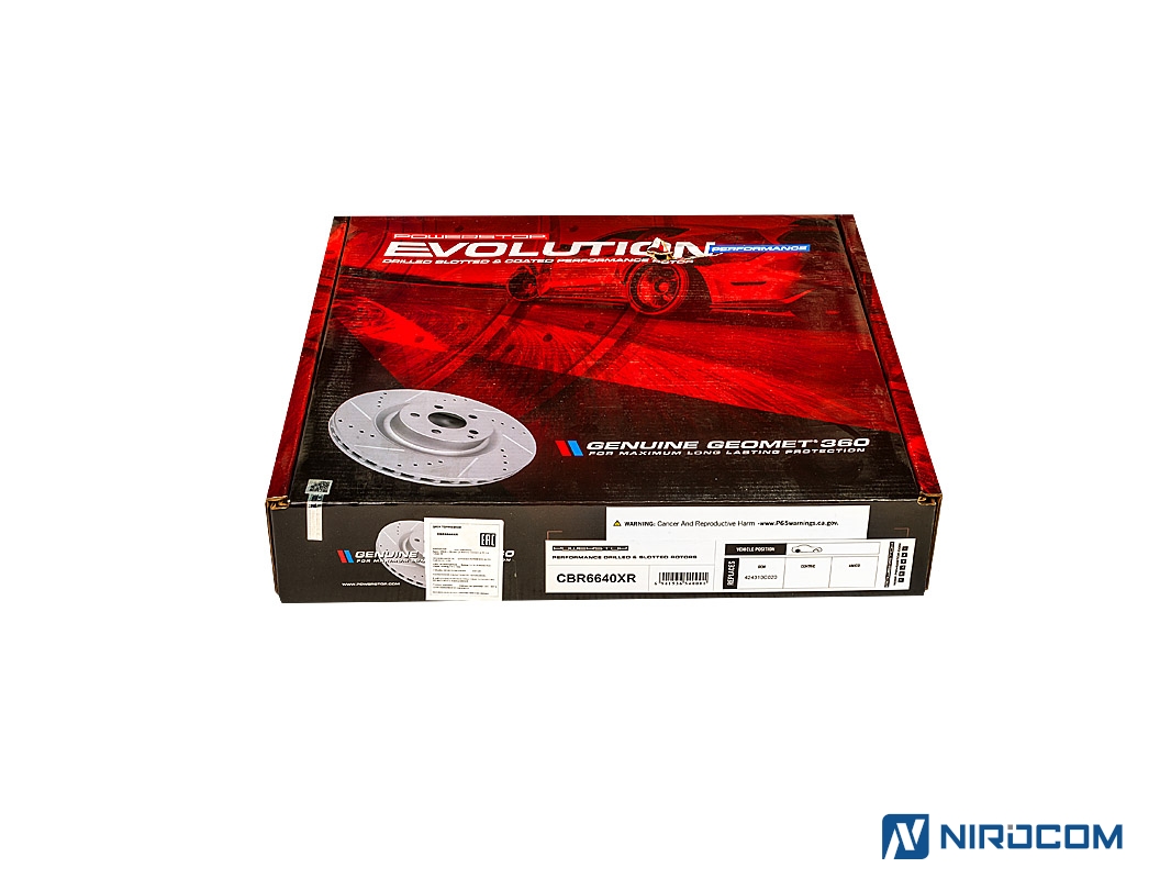 Тормозные диски PowerStop Evolution выполнены из чугуна с повышенным содержанием хрома и никеля. Слоты и перфорация служат как для охлаждения, так и для улучшения коэффициента трения и эффективной работы в различных внешних условиях. Лучшее решение для динамичной и спортивной манеры езды и несравнимая стойкость к перегреву. Все тормозные диски PowerStop Evolution спроектированы в полном соответствии с оригинальными размерами и спецификациями. Прецизионная лазерная чистовая обработка гарантирует их простую и быструю установку, а также безотказную работу на протяжении всего срока службы. Весь тормозной диск, включая внутренние лопасти покрыт запатентованным составом GEOMET® (смесь с использованием дихромата серебра и цинка) которое чрезвычайно стойко к окислению и коррозии, не влияя при этом на эффективность торможения.