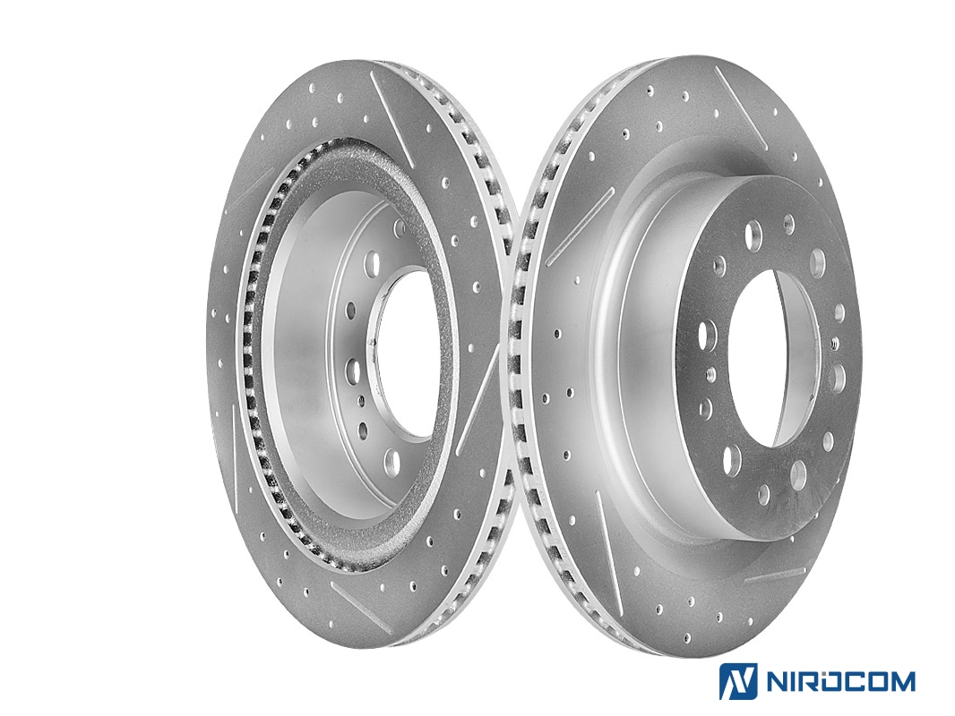 • характеристики тормозных дисков: потенциал рассеивания тепла может по-разному влиять на диски в зависимости от того, вентилированные они или нет, имеется ли перфорация, насечки;