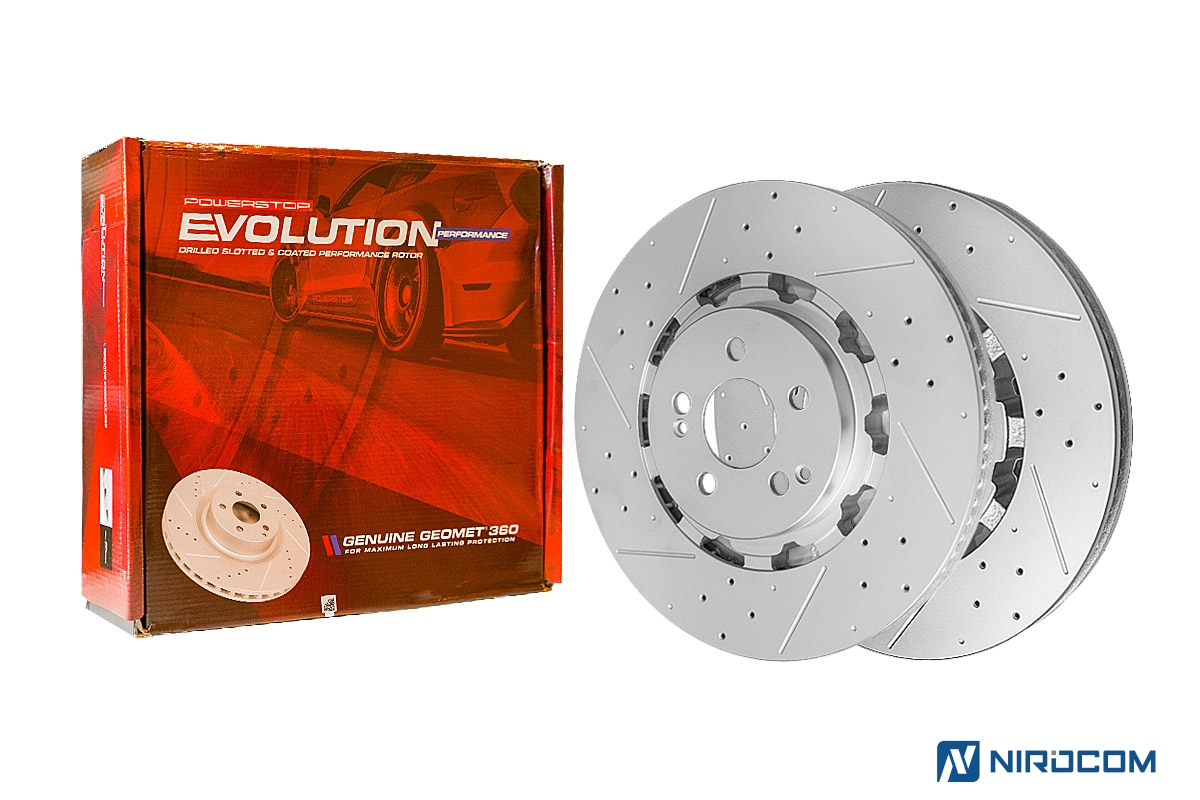 Тормозные диски PowerStop Evolution выполнены из чугуна с повышенным содержанием хрома и никеля. Слоты и перфорация служат как для охлаждения, так и для улучшения коэффициента трения и эффективной работы в различных внешних условиях. Лучшее решение для динамичной и спортивной манеры езды и несравнимая стойкость к перегреву. Все тормозные диски PowerStop Evolution спроектированы в полном соответствии с оригинальными размерами и спецификациями. Прецизионная лазерная чистовая обработка гарантирует их простую и быструю установку, а также безотказную работу на протяжении всего срока службы. Весь тормозной диск, включая внутренние лопасти покрыт запатентованным составом GEOMET® (смесь с использованием дихромата серебра и цинка) которое чрезвычайно стойко к окислению и коррозии, не влияя при этом на эффективность торможения.