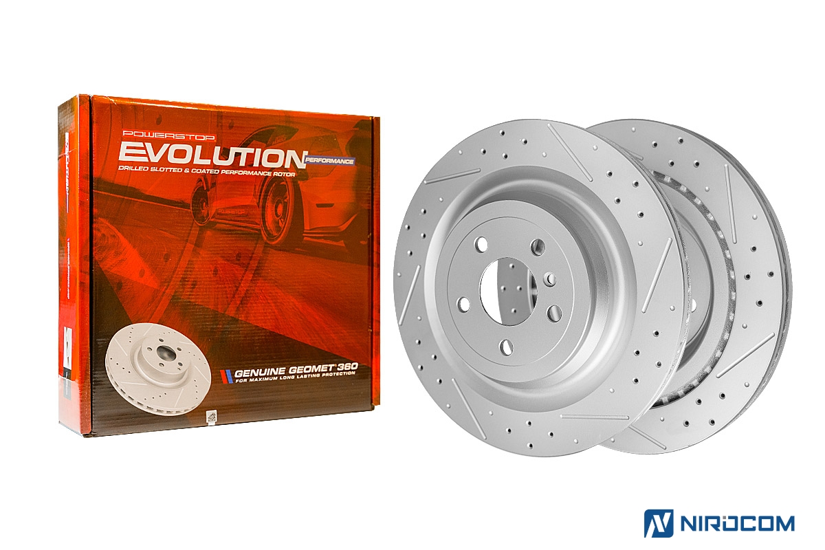 Тормозные диски PowerStop Evolution выполнены из чугуна с повышенным содержанием хрома и никеля. Слоты и перфорация служат как для охлаждения, так и для улучшения коэффициента трения и эффективной работы в различных внешних условиях. Лучшее решение для динамичной и спортивной манеры езды и несравнимая стойкость к перегреву. Все тормозные диски PowerStop Evolution спроектированы в полном соответствии с оригинальными размерами и спецификациями. Прецизионная лазерная чистовая обработка гарантирует их простую и быструю установку, а также безотказную работу на протяжении всего срока службы. Весь тормозной диск, включая внутренние лопасти покрыт запатентованным составом GEOMET® (смесь с использованием дихромата серебра и цинка) которое чрезвычайно стойко к окислению и коррозии, не влияя при этом на эффективность торможения.