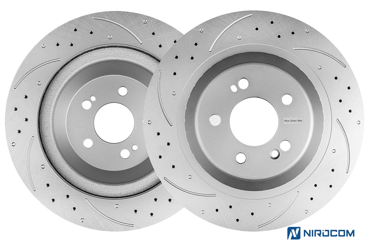 • характеристики тормозных дисков: потенциал рассеивания тепла может по-разному влиять на диски в зависимости от того, вентилированные они или нет, имеется ли перфорация, насечки;