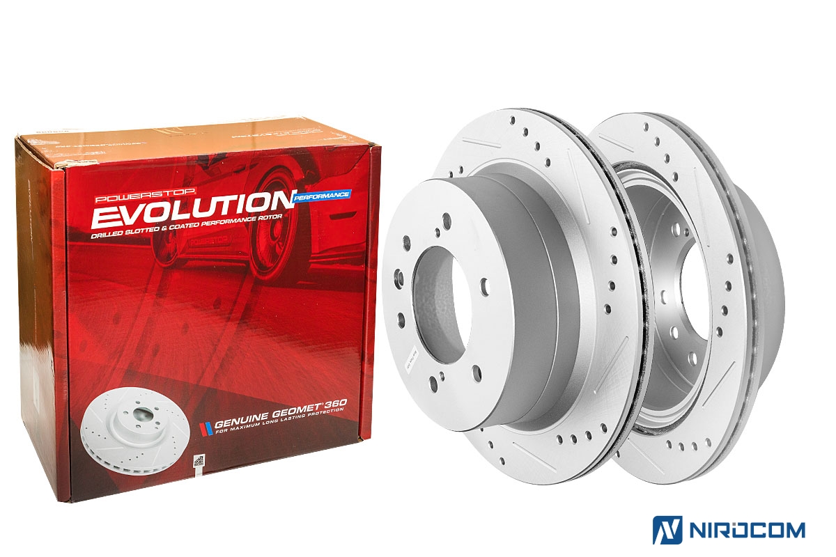 Тормозные диски PowerStop Evolution выполнены из чугуна с повышенным содержанием хрома и никеля. Слоты и перфорация служат как для охлаждения, так и для улучшения коэффициента трения и эффективной работы в различных внешних условиях. Лучшее решение для динамичной и спортивной манеры езды и несравнимая стойкость к перегреву. Все тормозные диски PowerStop Evolution спроектированы в полном соответствии с оригинальными размерами и спецификациями. Прецизионная лазерная чистовая обработка гарантирует их простую и быструю установку, а также безотказную работу на протяжении всего срока службы. Весь тормозной диск, включая внутренние лопасти покрыт запатентованным составом GEOMET® (смесь с использованием дихромата серебра и цинка) которое чрезвычайно стойко к окислению и коррозии, не влияя при этом на эффективность торможения.