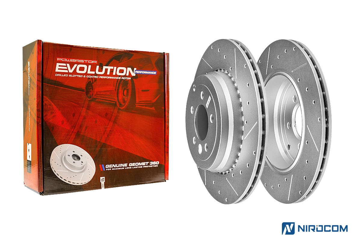 Тормозные диски PowerStop Evolution выполнены из чугуна с повышенным содержанием хрома и никеля. Слоты и перфорация служат как для охлаждения, так и для улучшения коэффициента трения и эффективной работы в различных внешних условиях. Лучшее решение для динамичной и спортивной манеры езды и несравнимая стойкость к перегреву. Все тормозные диски PowerStop Evolution спроектированы в полном соответствии с оригинальными размерами и спецификациями. Прецизионная лазерная чистовая обработка гарантирует их простую и быструю установку, а также безотказную работу на протяжении всего срока службы. Весь тормозной диск, включая внутренние лопасти покрыт запатентованным составом GEOMET® (смесь с использованием дихромата серебра и цинка) которое чрезвычайно стойко к окислению и коррозии, не влияя при этом на эффективность торможения.