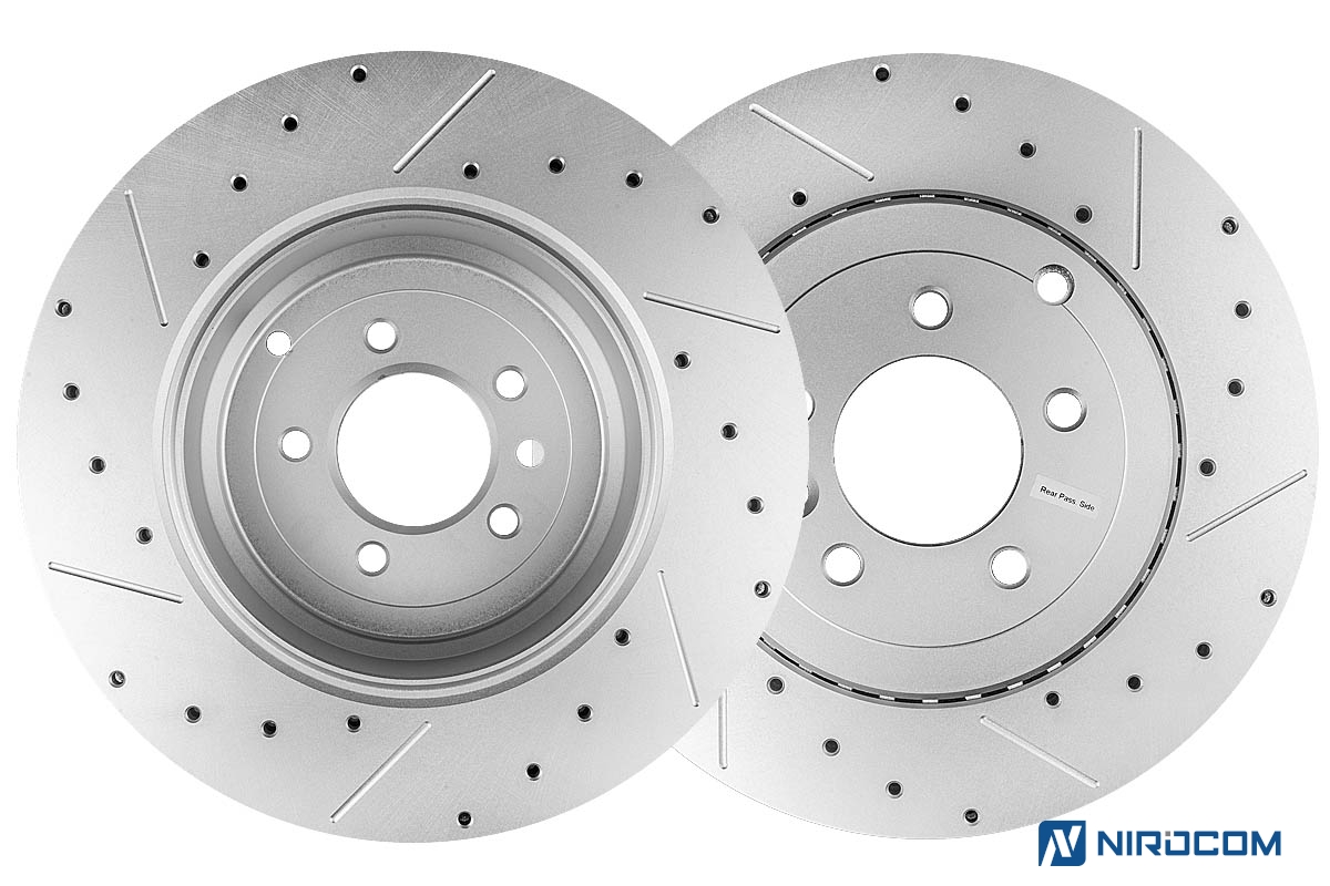 • характеристики тормозных дисков: потенциал рассеивания тепла может по-разному влиять на диски в зависимости от того, вентилированные они или нет, имеется ли перфорация, насечки;