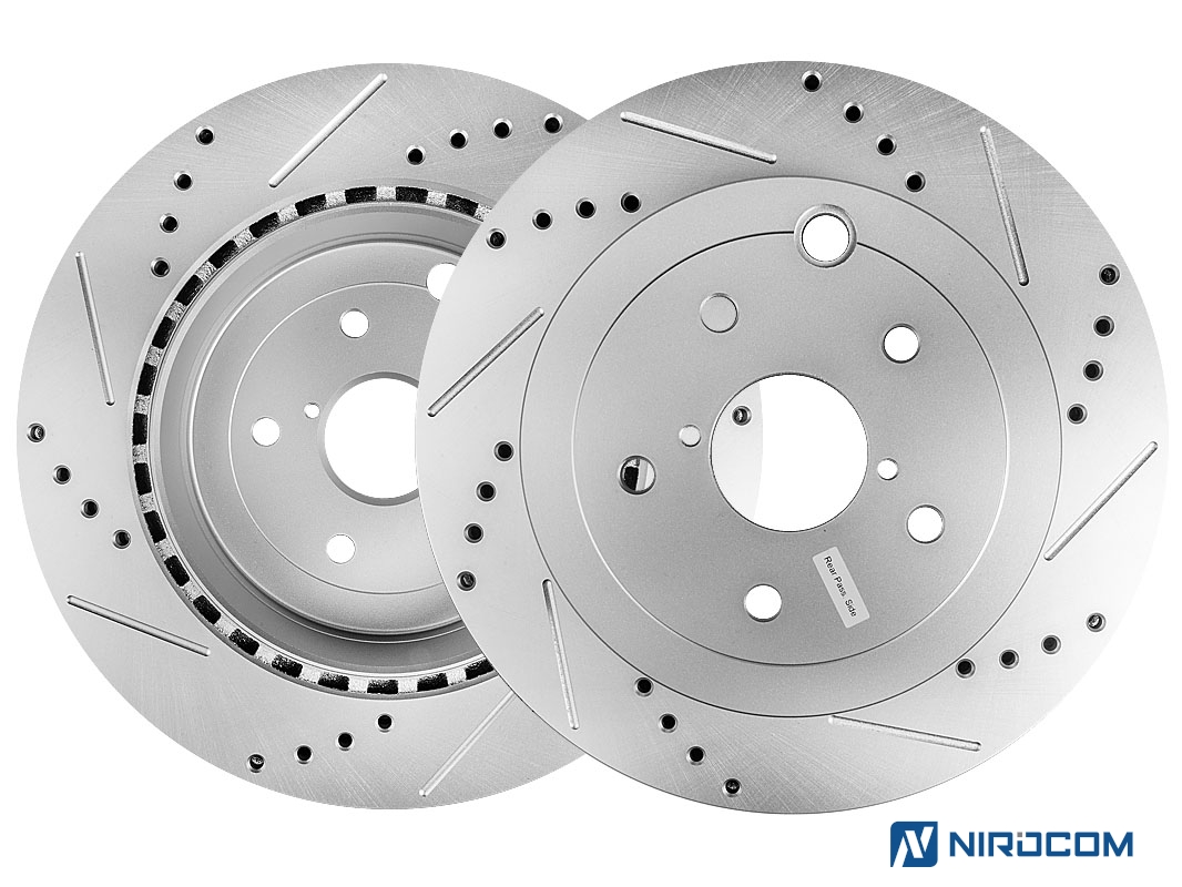 Выполнять шлифовку или проточки дисков с перфорацией и насечками можно. Для этого скорость вращения шпинделя токарного станка должна быть минимальной. При каждой замене тормозных колодок следует также выполнять замену или проточку диска для обеспечения правильного прилегания колодок. Однако, чтобы получить диск с ненаправленной поперечной обработкой поверхности, лучше всего приобрести новый комплект дисков «PowerStop». Скорее всего, это будет стоить примерно столько же, а может и меньше, чем проточка дисков.