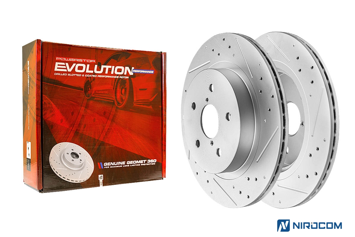 Тормозные диски PowerStop Evolution выполнены из чугуна с повышенным содержанием хрома и никеля. Слоты и перфорация служат как для охлаждения, так и для улучшения коэффициента трения и эффективной работы в различных внешних условиях. Лучшее решение для динамичной и спортивной манеры езды и несравнимая стойкость к перегреву. Все тормозные диски PowerStop Evolution спроектированы в полном соответствии с оригинальными размерами и спецификациями. Прецизионная лазерная чистовая обработка гарантирует их простую и быструю установку, а также безотказную работу на протяжении всего срока службы. Весь тормозной диск, включая внутренние лопасти покрыт запатентованным составом GEOMET® (смесь с использованием дихромата серебра и цинка) которое чрезвычайно стойко к окислению и коррозии, не влияя при этом на эффективность торможения.