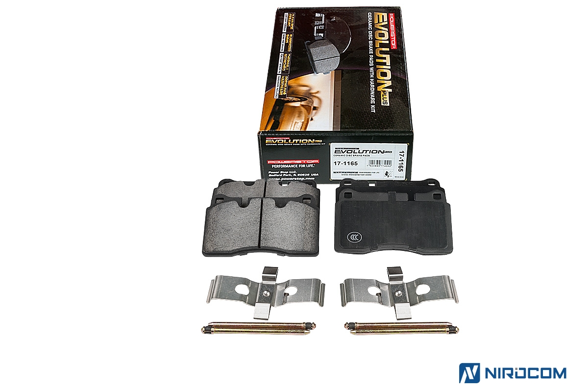 Колодки PowerStop представляют собой специально разработанный керамический состав Evolution, обеспечивающий незначительное образование пыли и очень низкий уровень шума при торможении. Данный состав ориентирован на автомобили имеющих большую массу, таких как внедорожники, кроссоверы и автомобили представительского класса. Тормозные системы таких автомобилей испытывают особенные температурные и динамические нагрузки. Также в комплекте с колодками поставляется специальная фурнитура для простой установки в суппорт. Керамические тормозные колодки PowerStop Z17, по сравнению с обычной органикой (а 95% тормозных колодок на европейском рынке именно органические), очень устойчивы к высоким температурам и трению. При этом принадлежат к классу «стрит»: имеют невысокое содержание керамики, а следовательно, не требуют дополнительного прогрева.