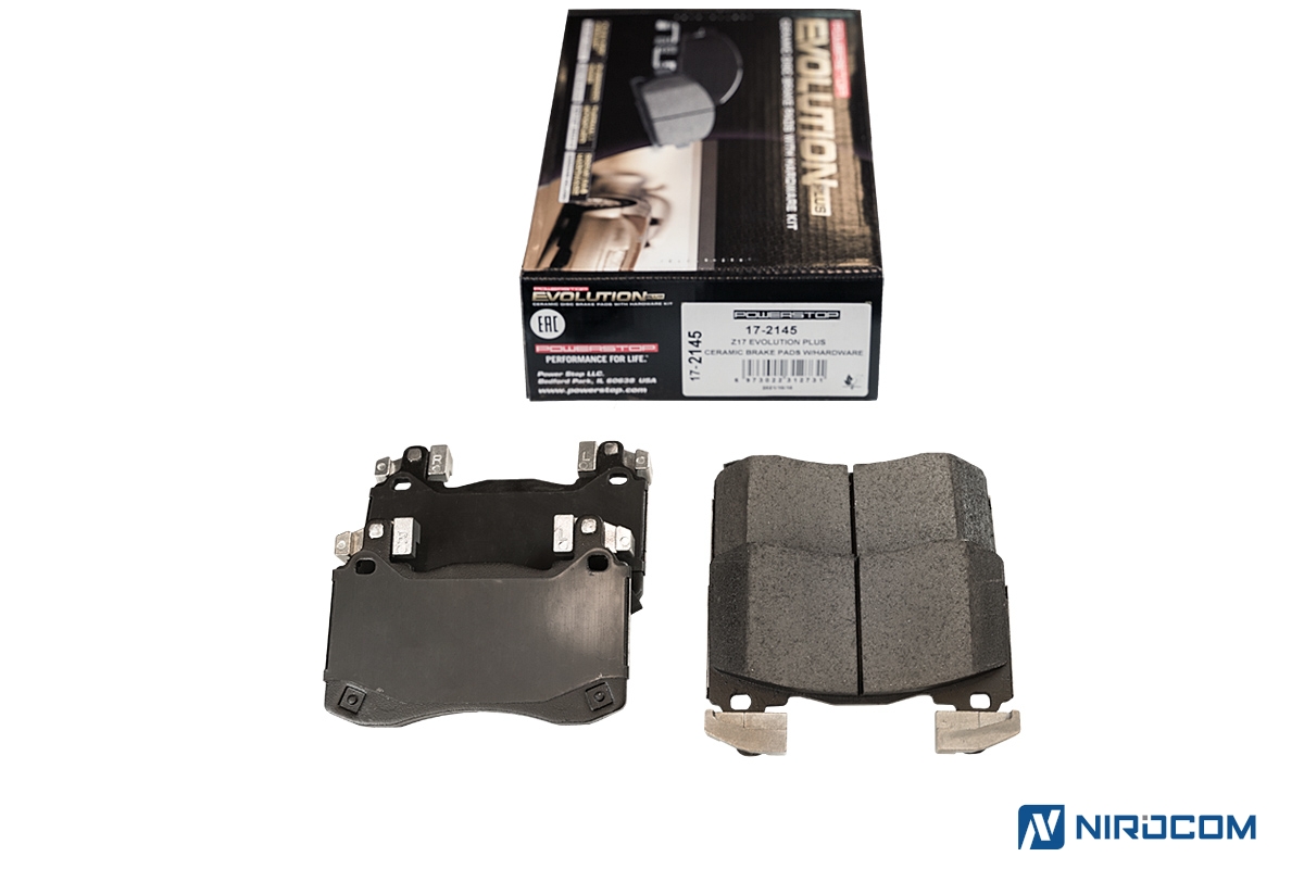 Колодки PowerStop представляют собой специально разработанный керамический состав Evolution, обеспечивающий незначительное образование пыли и очень низкий уровень шума при торможении. Данный состав ориентирован на автомобили имеющих большую массу, таких как внедорожники, кроссоверы и автомобили представительского класса. Тормозные системы таких автомобилей испытывают особенные температурные и динамические нагрузки. Также в комплекте с колодками поставляется специальная фурнитура для простой установки в суппорт. Керамические тормозные колодки PowerStop Z17, по сравнению с обычной органикой (а 95% тормозных колодок на европейском рынке именно органические), очень устойчивы к высоким температурам и трению. При этом принадлежат к классу «стрит»: имеют невысокое содержание керамики, а следовательно, не требуют дополнительного прогрева.