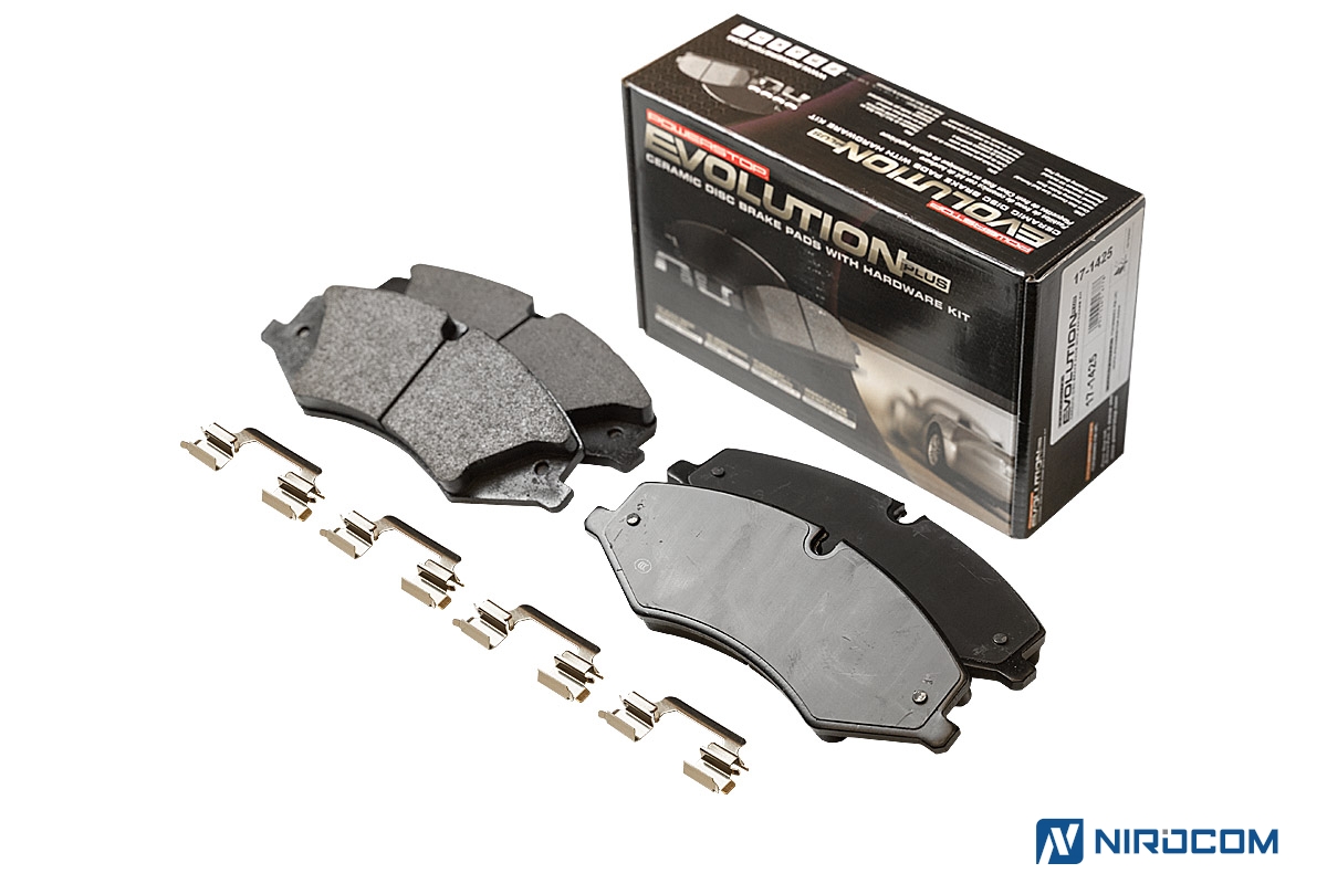 Колодки PowerStop представляют собой специально разработанный керамический состав Evolution, обеспечивающий незначительное образование пыли и очень низкий уровень шума при торможении. Данный состав ориентирован на автомобили имеющих большую массу, таких как внедорожники, кроссоверы и автомобили представительского класса. Тормозные системы таких автомобилей испытывают особенные температурные и динамические нагрузки. Также в комплекте с колодками поставляется специальная фурнитура для простой установки в суппорт. Керамические тормозные колодки PowerStop Z17, по сравнению с обычной органикой (а 95% тормозных колодок на европейском рынке именно органические), очень устойчивы к высоким температурам и трению. При этом принадлежат к классу «стрит»: имеют невысокое содержание керамики, а следовательно, не требуют дополнительного прогрева.