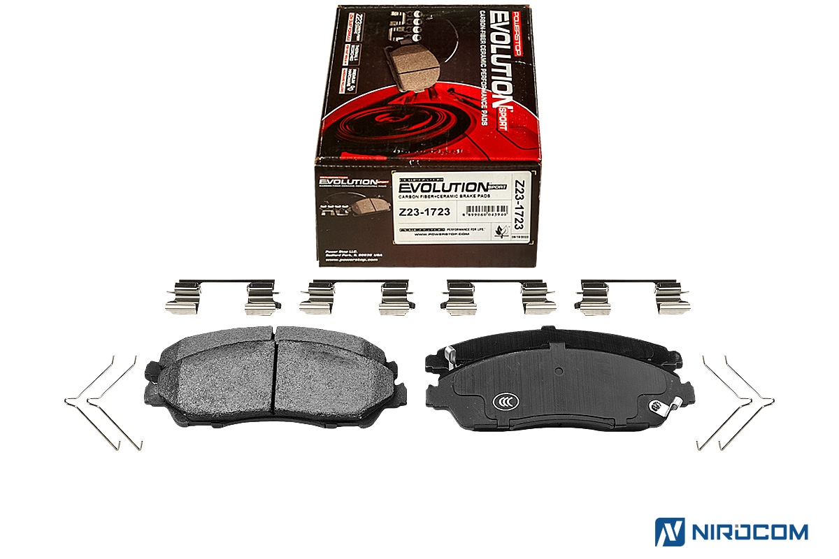 Power Stop Evolution Z23 – это керамический состав, укрепленный углеродными (карбоновыми) волокнами. На практике это высокотемпературная колодка, стойкая к износу, с повышенным коэффициентом трения
