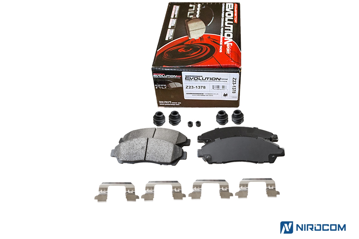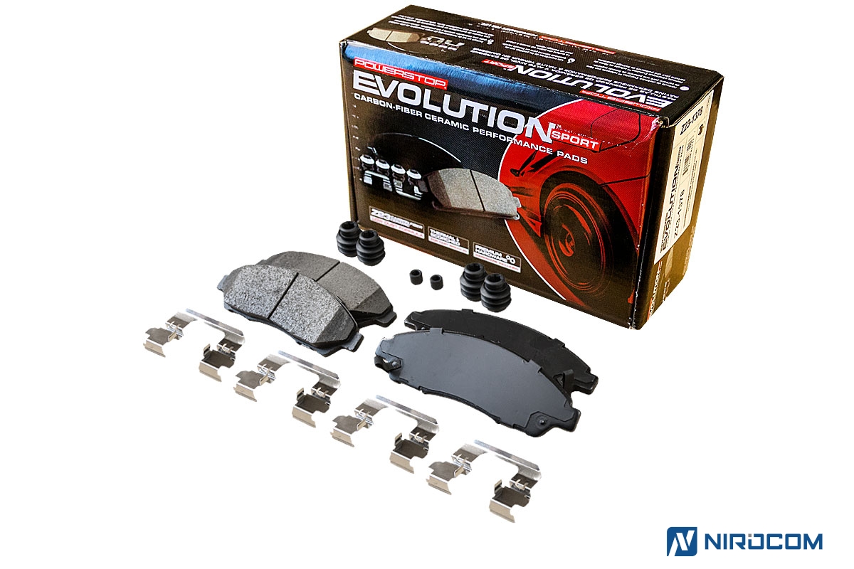 Power Stop Evolution Z23 – это керамический состав, укрепленный углеродными (карбоновыми) волокнами. На практике это высокотемпературная колодка, стойкая к износу, с повышенным коэффициентом трения