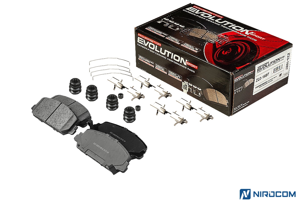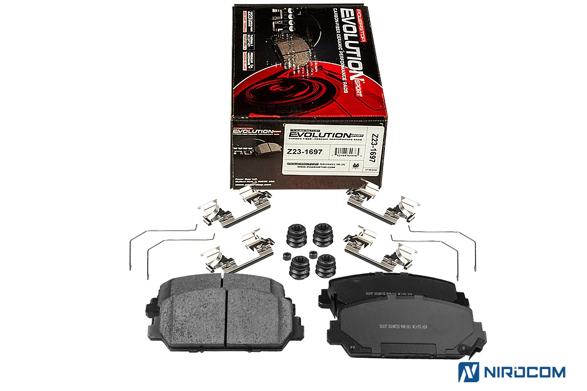 Power Stop Evolution Z23 – это керамический состав, укрепленный углеродными (карбоновыми) волокнами. На практике это высокотемпературная колодка, стойкая к износу, с повышенным коэффициентом трения