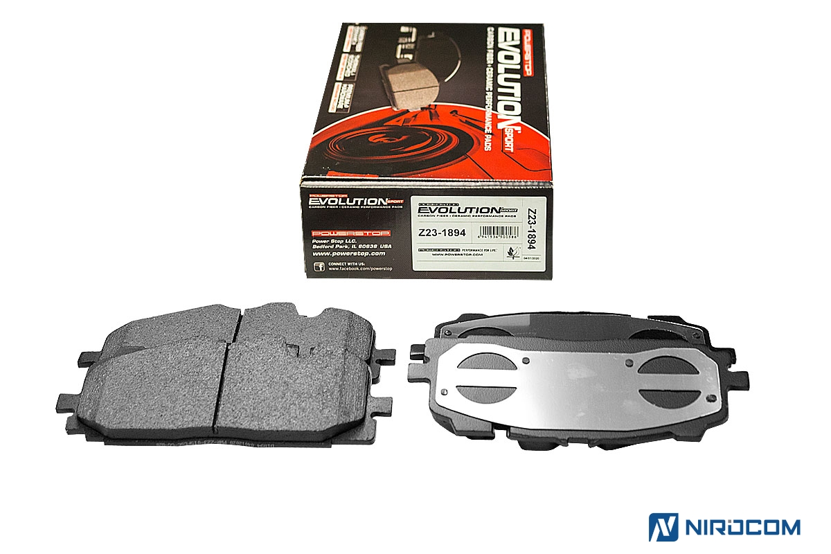 Серия колодок Z23 для любителей активной езды, желающих получить максимальную отдачу от своего автомобиля, не жертвуя повседневной управляемостью. Эти колодки работают при еще более высоких температурах (по сравнению с колодками Evolution Z17). Также был увеличен коэффициент трения, что дает возможность использовать эти колодки на стоковых тормозных суппортах даже при существенном увеличении мощности двигателя. PowerStop Evolution Z23 – это керамический состав, укрепленный углеродными (карбоновыми) волокнами. На практике это высокотемпературная колодка, стойкая к износу с повышенным коэффициентом трения. Колодки серии Z23 относятся к классу "улица/трек", в то время как Z17 – "уличная" колодка. Иными словами, Z23 PowerStop способна легко переварить нагрев до 660С, а также показать более стабильный коэффициент трения – класс FG (0,46-0,55). У колодок серии Z17 класс трения FF (0,36-0,45).