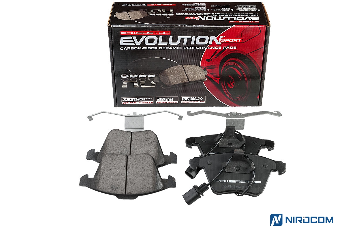 Power Stop Evolution Z23 – это керамический состав, укрепленный углеродными (карбоновыми) волокнами. На практике это высокотемпературная колодка, стойкая к износу, с повышенным коэффициентом трения