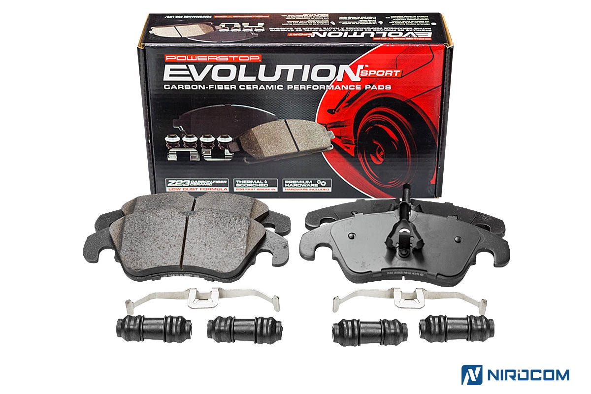 Power Stop Evolution Z23 – это керамический состав, укрепленный углеродными (карбоновыми) волокнами. На практике это высокотемпературная колодка, стойкая к износу, с повышенным коэффициентом трения
