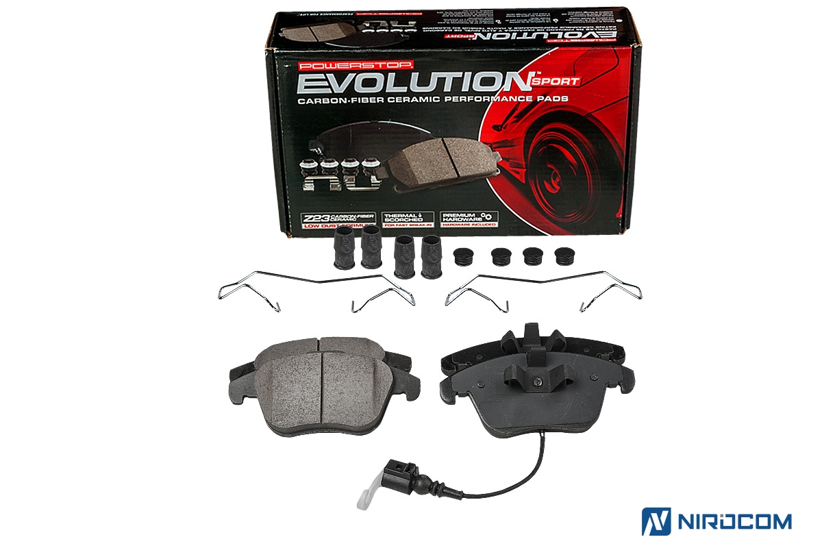 Серия колодок Z23 для любителей активной езды, желающих получить максимальную отдачу от своего автомобиля, не жертвуя повседневной управляемостью. Эти колодки работают при еще более высоких температурах (по сравнению с колодками Evolution Z17). Также был увеличен коэффициент трения, что дает возможность использовать эти колодки на стоковых тормозных суппортах даже при существенном увеличении мощности двигателя. PowerStop Evolution Z23 – это керамический состав, укрепленный углеродными (карбоновыми) волокнами. На практике это высокотемпературная колодка, стойкая к износу с повышенным коэффициентом трения. Колодки серии Z23 относятся к классу "улица/трек", в то время как Z17 – "уличная" колодка. Иными словами, Z23 PowerStop способна легко переварить нагрев до 660С, а также показать более стабильный коэффициент трения – класс FG (0,46-0,55). У колодок серии Z17 класс трения FF (0,36-0,45).
