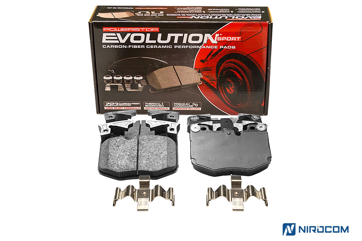 Power Stop Evolution Z23 – это керамический состав, укрепленный углеродными (карбоновыми) волокнами. На практике это высокотемпературная колодка, стойкая к износу, с повышенным коэффициентом трения