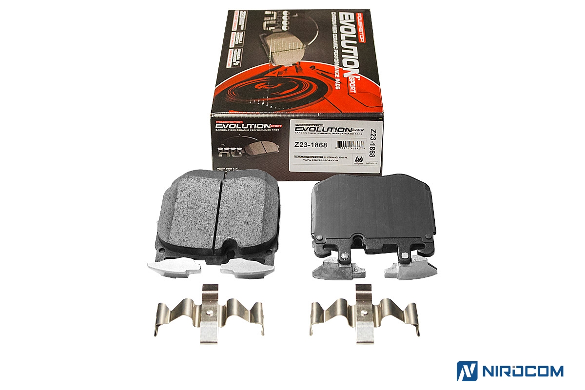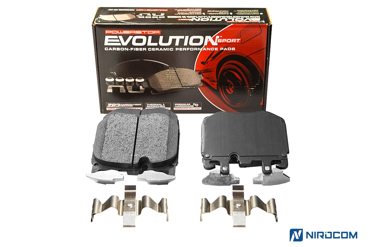 Power Stop Evolution Z23 – это керамический состав, укрепленный углеродными (карбоновыми) волокнами. На практике это высокотемпературная колодка, стойкая к износу, с повышенным коэффициентом трения