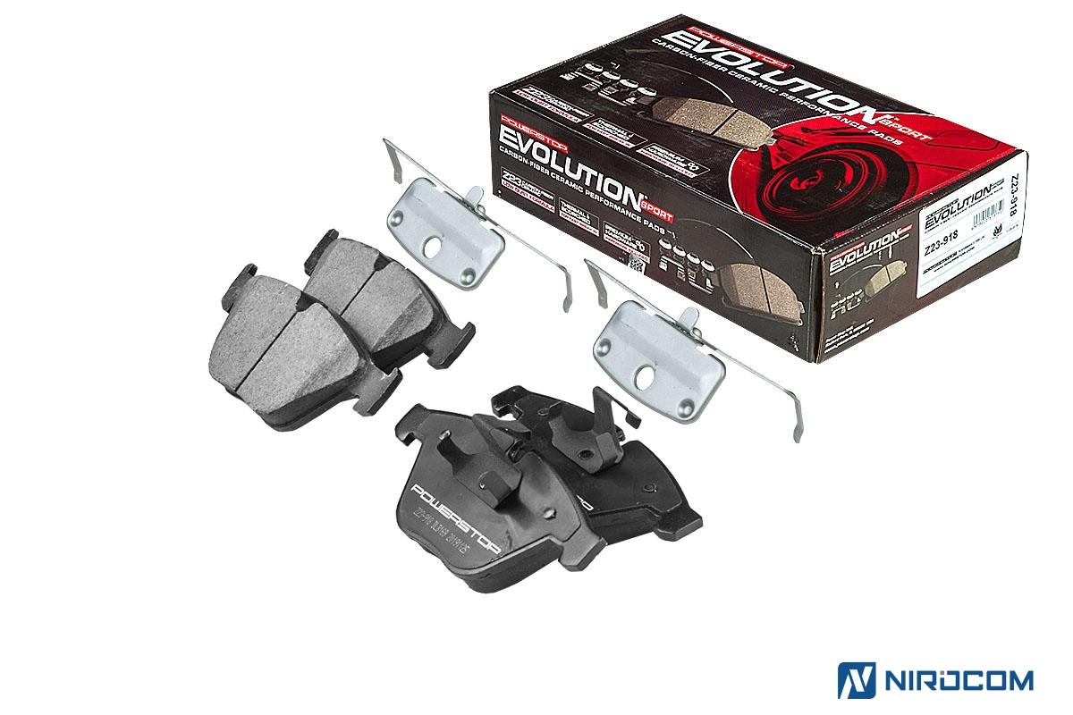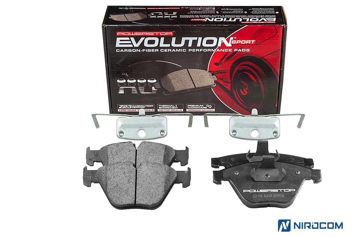 Power Stop Evolution Z23 – это керамический состав, укрепленный углеродными (карбоновыми) волокнами. На практике это высокотемпературная колодка, стойкая к износу, с повышенным коэффициентом трения