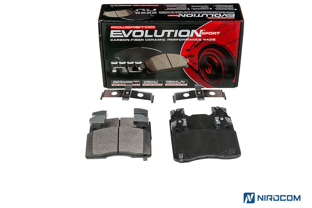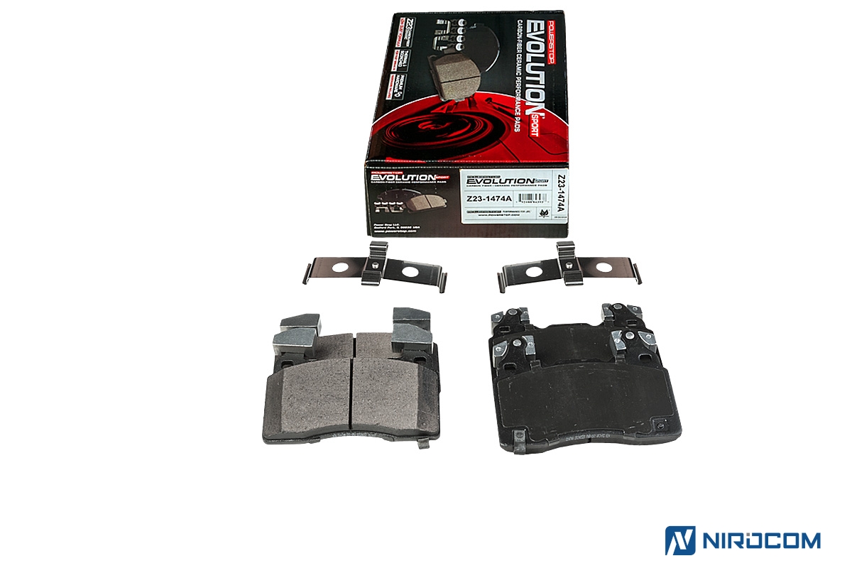 Power Stop Evolution Z23 – это керамический состав, укрепленный углеродными (карбоновыми) волокнами. На практике это высокотемпературная колодка, стойкая к износу, с повышенным коэффициентом трения