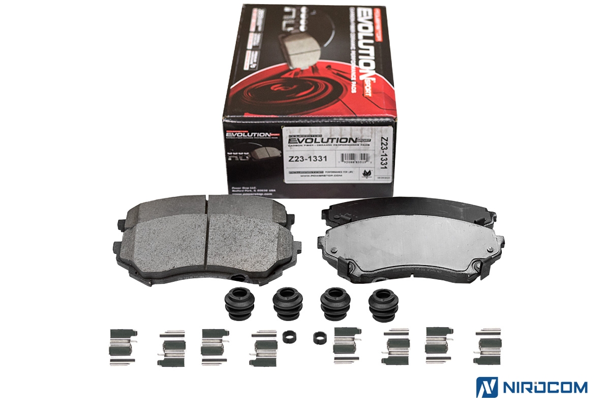 Power Stop Evolution Z23 – это керамический состав, укрепленный углеродными (карбоновыми) волокнами. На практике это высокотемпературная колодка, стойкая к износу, с повышенным коэффициентом трения