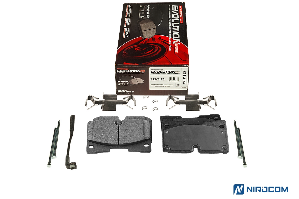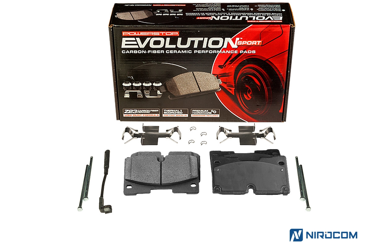 Power Stop Evolution Z23 – это керамический состав, укрепленный углеродными (карбоновыми) волокнами. На практике это высокотемпературная колодка, стойкая к износу, с повышенным коэффициентом трения