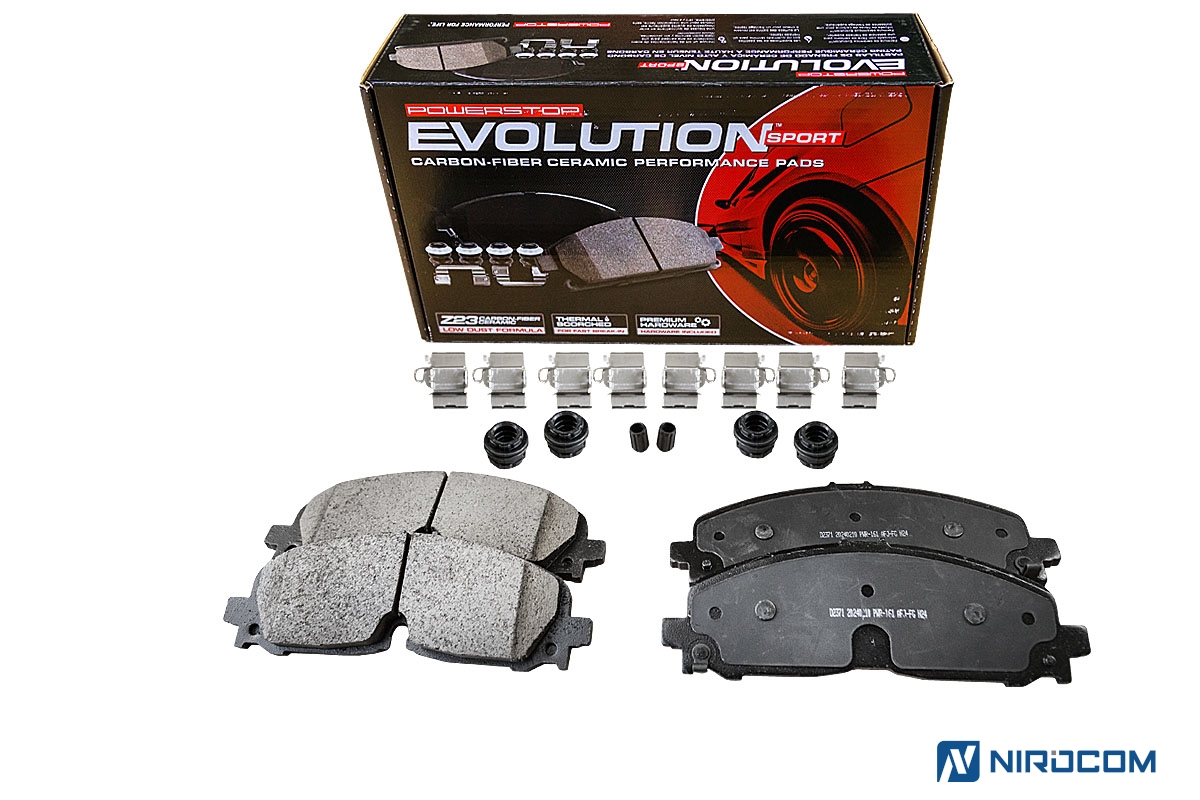Power Stop Evolution Z23 – это керамический состав, укрепленный углеродными (карбоновыми) волокнами. На практике это высокотемпературная колодка, стойкая к износу, с повышенным коэффициентом трения