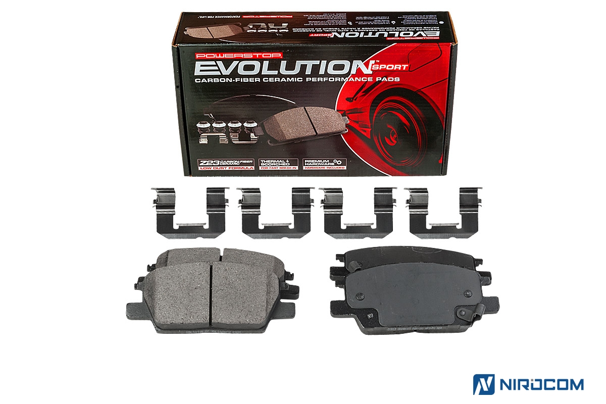 Power Stop Evolution Z23 – это керамический состав, укрепленный углеродными (карбоновыми) волокнами. На практике это высокотемпературная колодка, стойкая к износу, с повышенным коэффициентом трения