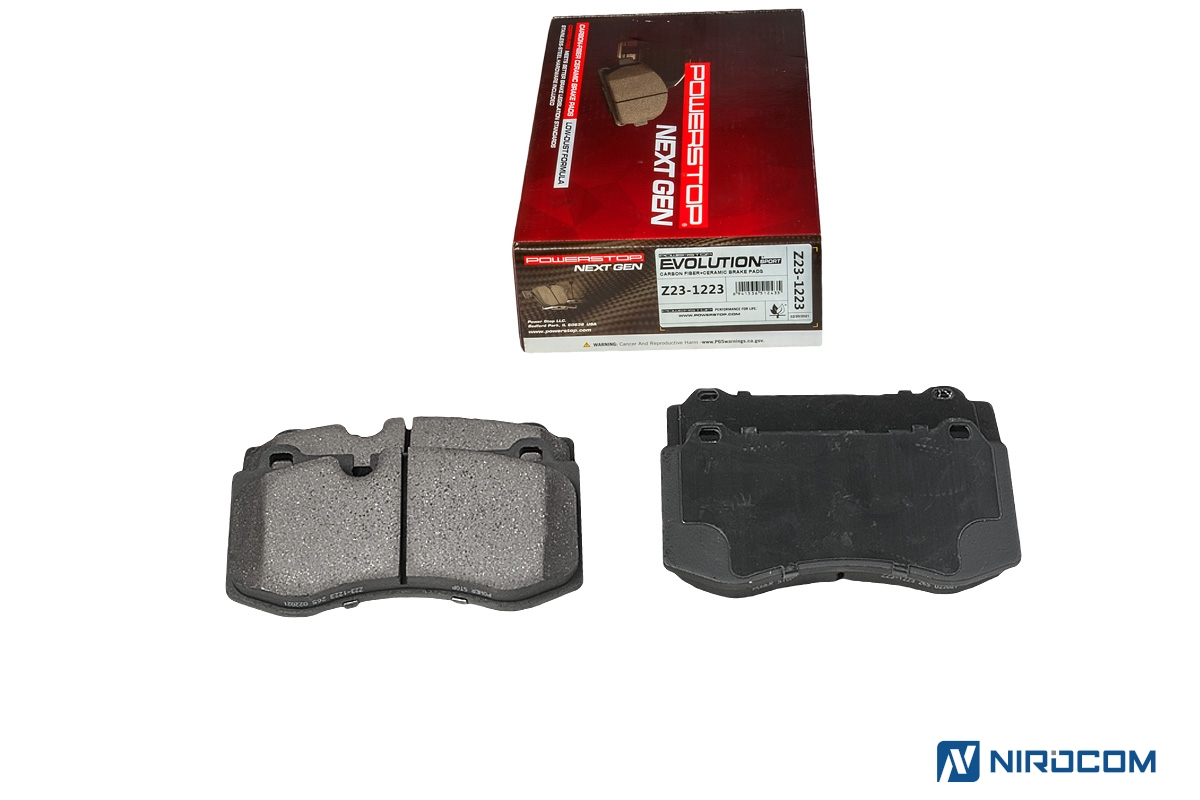 Серия колодок Z23 для любителей активной езды, желающих получить максимальную отдачу от своего автомобиля, не жертвуя повседневной управляемостью. Эти колодки работают при еще более высоких температурах (по сравнению с колодками Evolution Z17). Также был увеличен коэффициент трения, что дает возможность использовать эти колодки на стоковых тормозных суппортах даже при существенном увеличении мощности двигателя. PowerStop Evolution Z23 – это керамический состав, укрепленный углеродными (карбоновыми) волокнами. На практике это высокотемпературная колодка, стойкая к износу с повышенным коэффициентом трения. Колодки серии Z23 относятся к классу "улица/трек", в то время как Z17 – "уличная" колодка. Иными словами, Z23 PowerStop способна легко переварить нагрев до 660С, а также показать более стабильный коэффициент трения – класс FG (0,46-0,55). У колодок серии Z17 класс трения FF (0,36-0,45).