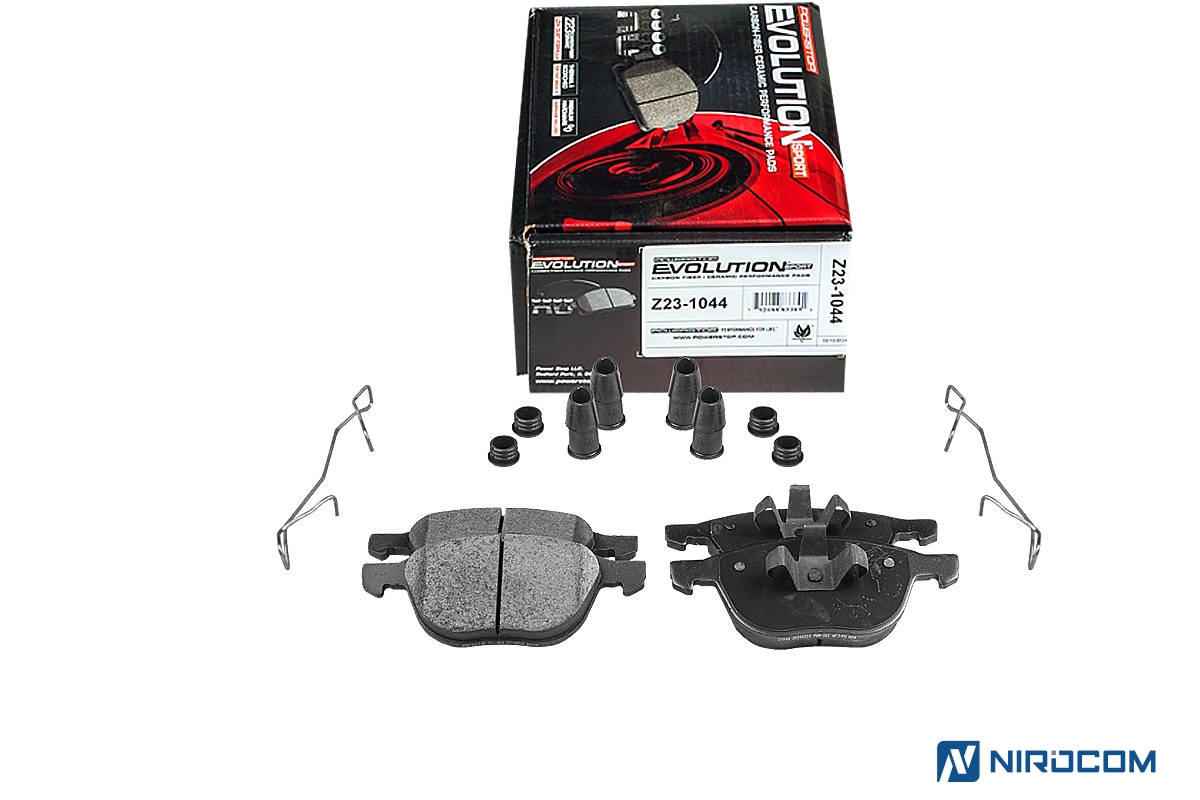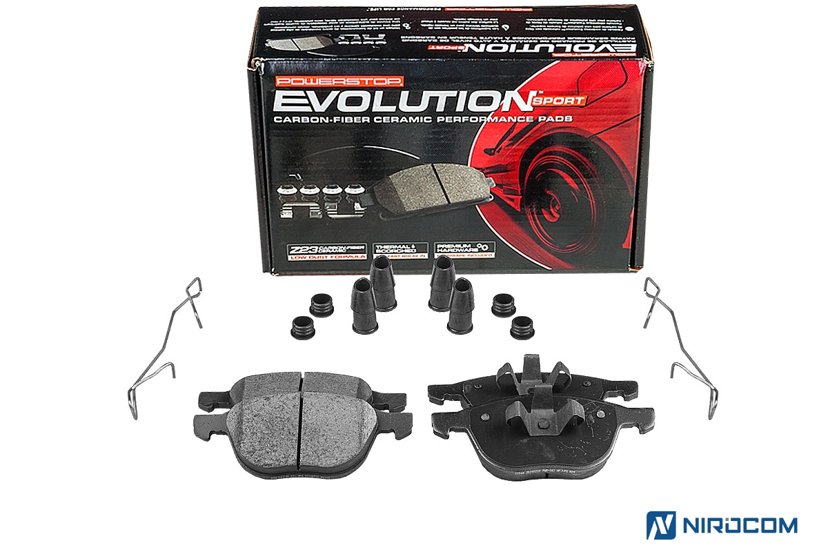 Серия колодок Z23 для любителей активной езды, желающих получить максимальную отдачу от своего автомобиля, не жертвуя повседневной управляемостью. Эти колодки работают при еще более высоких температурах (по сравнению с колодками Evolution Z17). Также был увеличен коэффициент трения, что дает возможность использовать эти колодки на стоковых тормозных суппортах даже при существенном увеличении мощности двигателя. PowerStop Evolution Z23 – это керамический состав, укрепленный углеродными (карбоновыми) волокнами. На практике это высокотемпературная колодка, стойкая к износу с повышенным коэффициентом трения. Колодки серии Z23 относятся к классу "улица/трек", в то время как Z17 – "уличная" колодка. Иными словами, Z23 PowerStop способна легко переварить нагрев до 660С, а также показать более стабильный коэффициент трения – класс FG (0,46-0,55). У колодок серии Z17 класс трения FF (0,36-0,45).