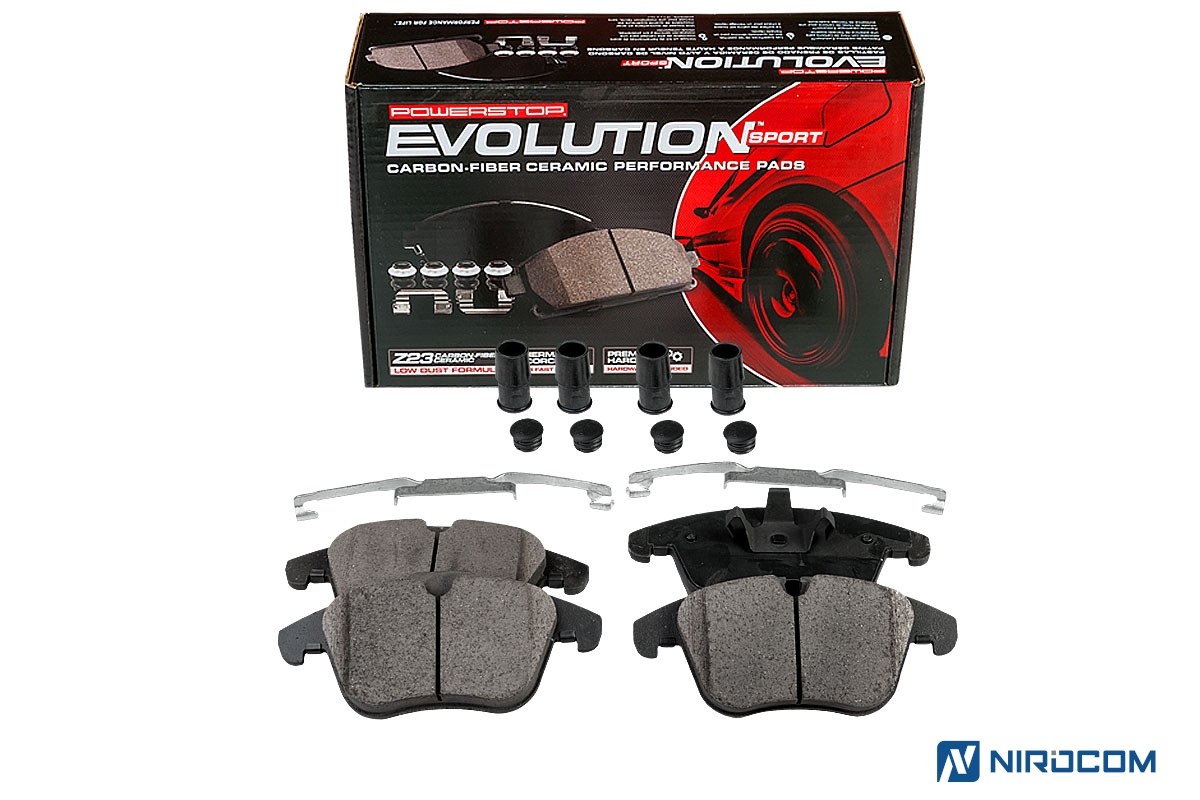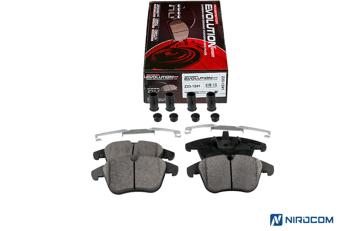 Серия колодок Z23 для любителей активной езды, желающих получить максимальную отдачу от своего автомобиля, не жертвуя повседневной управляемостью. Эти колодки работают при еще более высоких температурах (по сравнению с колодками Evolution Z17). Также был увеличен коэффициент трения, что дает возможность использовать эти колодки на стоковых тормозных суппортах даже при существенном увеличении мощности двигателя. PowerStop Evolution Z23 – это керамический состав, укрепленный углеродными (карбоновыми) волокнами. На практике это высокотемпературная колодка, стойкая к износу с повышенным коэффициентом трения. Колодки серии Z23 относятся к классу "улица/трек", в то время как Z17 – "уличная" колодка. Иными словами, Z23 PowerStop способна легко переварить нагрев до 660С, а также показать более стабильный коэффициент трения – класс FG (0,46-0,55). У колодок серии Z17 класс трения FF (0,36-0,45).