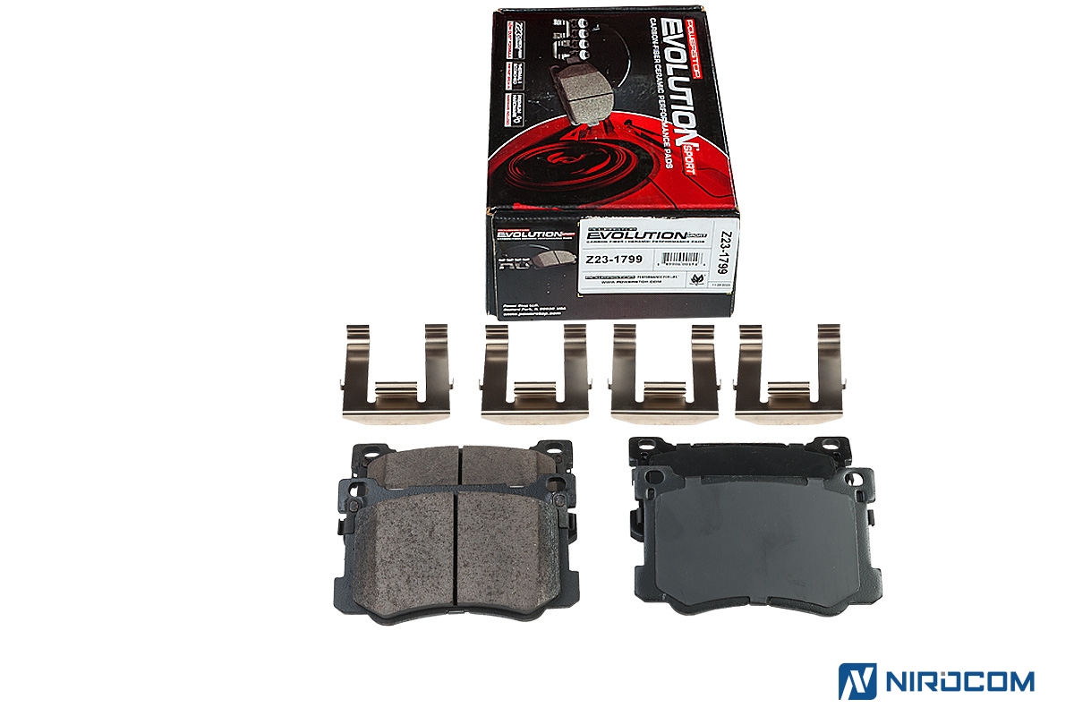 Power Stop Evolution Z23 – это керамический состав, укрепленный углеродными (карбоновыми) волокнами. На практике это высокотемпературная колодка, стойкая к износу, с повышенным коэффициентом трения