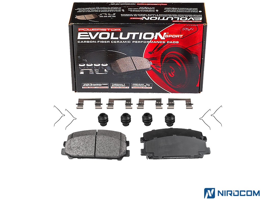 Power Stop Evolution Z23 – это керамический состав, укрепленный углеродными (карбоновыми) волокнами. На практике это высокотемпературная колодка, стойкая к износу, с повышенным коэффициентом трения