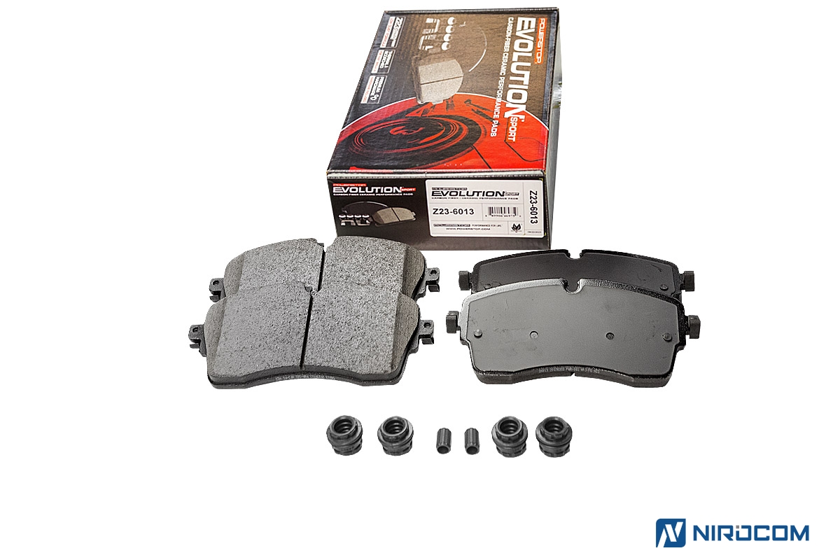 Power Stop Evolution Z23 – это керамический состав, укрепленный углеродными (карбоновыми) волокнами. На практике это высокотемпературная колодка, стойкая к износу, с повышенным коэффициентом трения