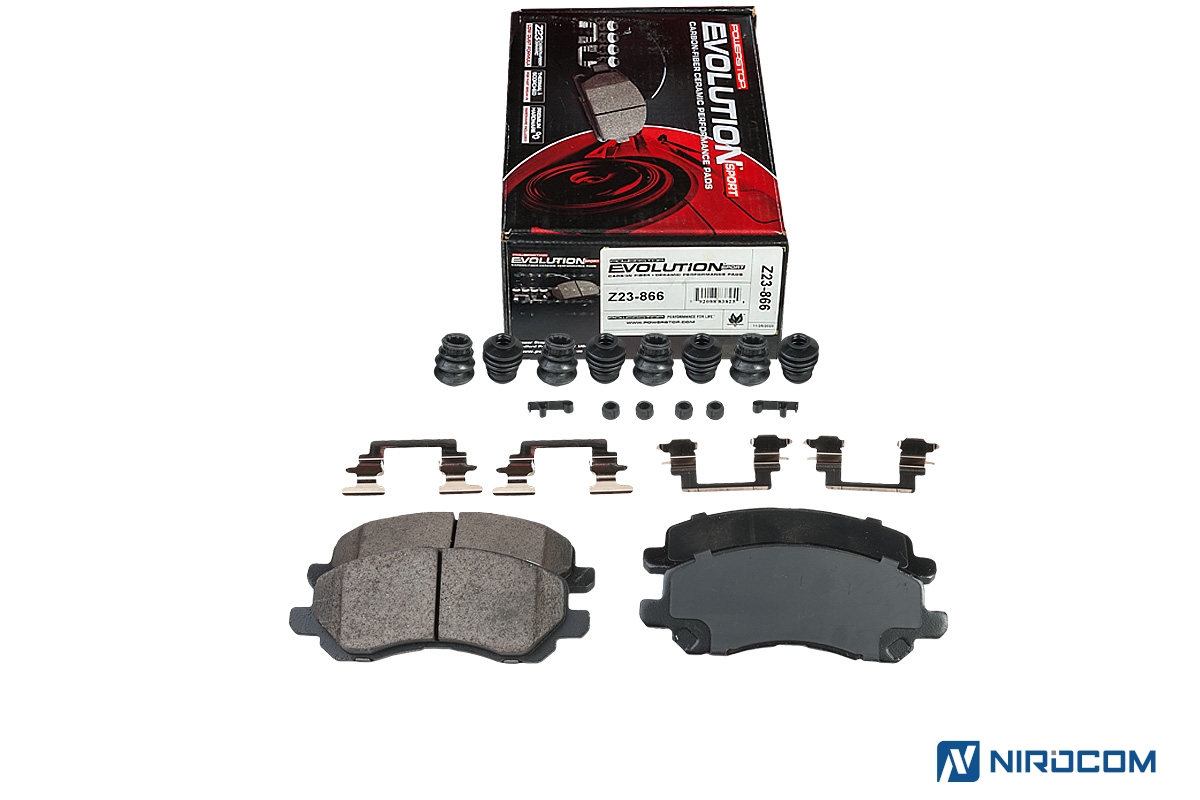 Серия колодок Z23 для любителей активной езды, желающих получить максимальную отдачу от своего автомобиля, не жертвуя повседневной управляемостью. Эти колодки работают при еще более высоких температурах (по сравнению с колодками Evolution Z17). Также был увеличен коэффициент трения, что дает возможность использовать эти колодки на стоковых тормозных суппортах даже при существенном увеличении мощности двигателя. PowerStop Evolution Z23 – это керамический состав, укрепленный углеродными (карбоновыми) волокнами. На практике это высокотемпературная колодка, стойкая к износу с повышенным коэффициентом трения. Колодки серии Z23 относятся к классу "улица/трек", в то время как Z17 – "уличная" колодка. Иными словами, Z23 PowerStop способна легко переварить нагрев до 660С, а также показать более стабильный коэффициент трения – класс FG (0,46-0,55). У колодок серии Z17 класс трения FF (0,36-0,45).