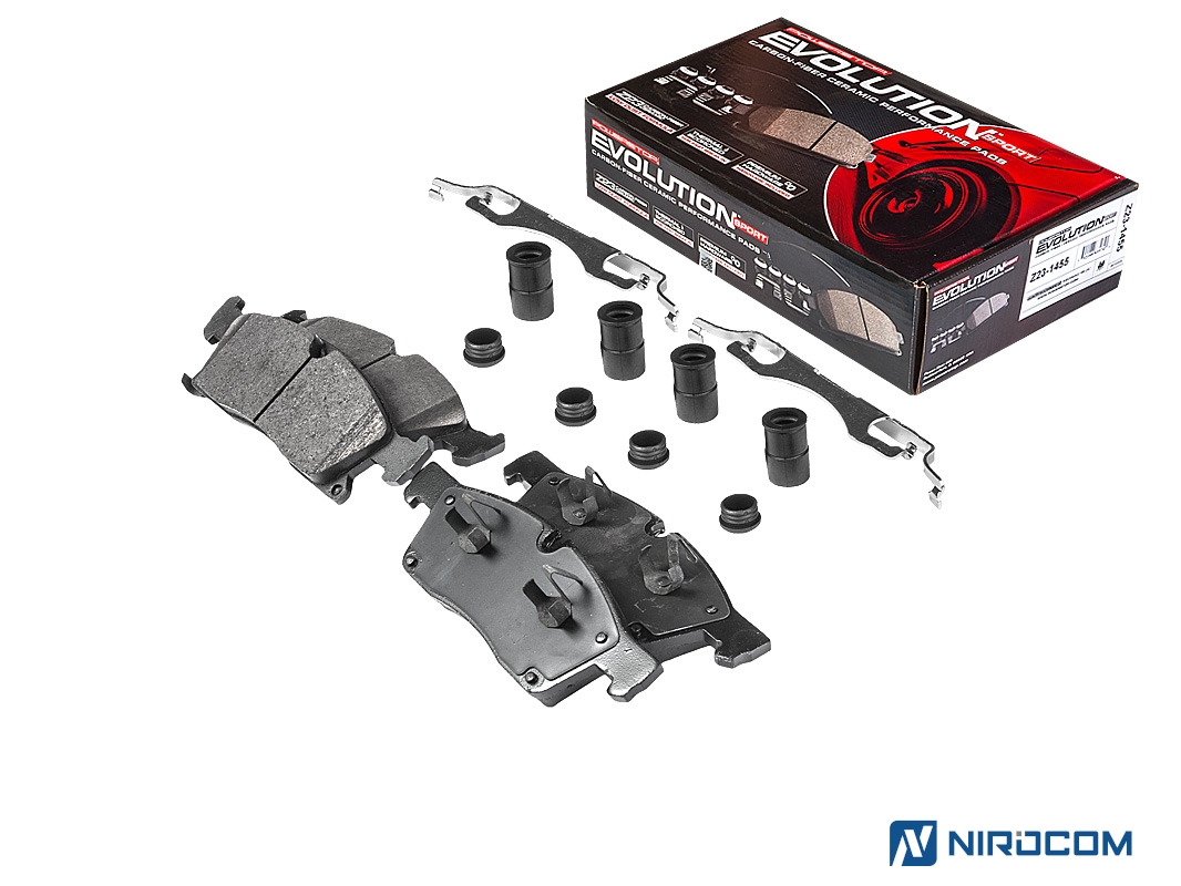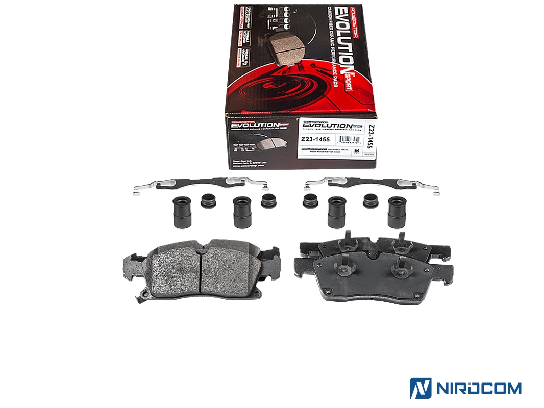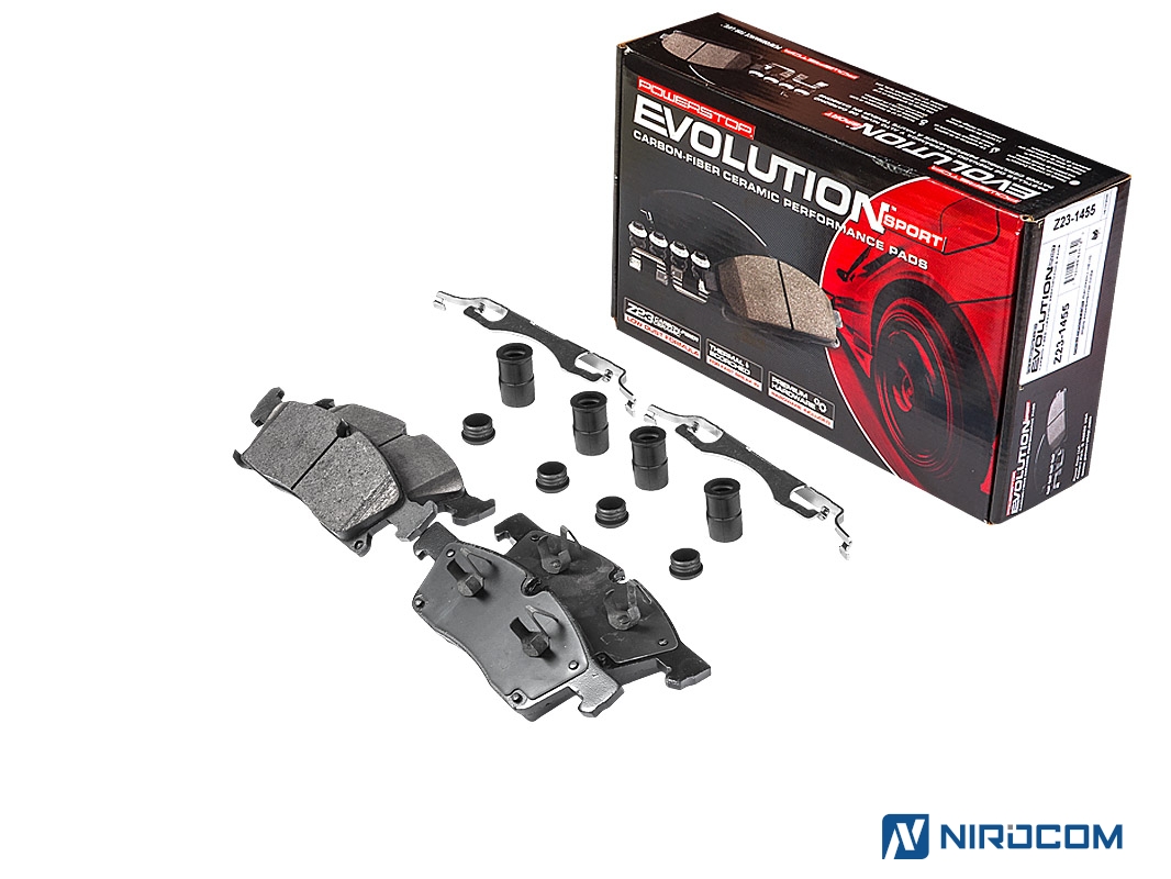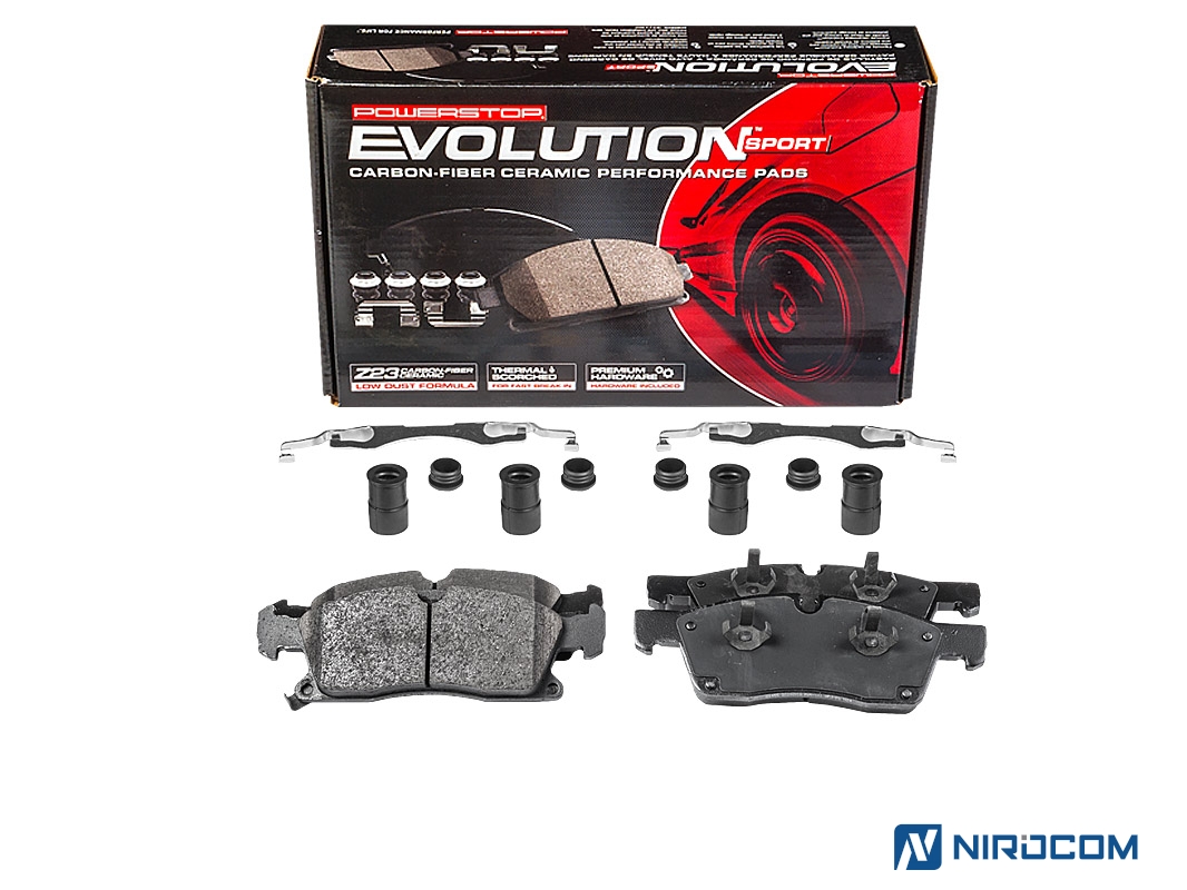 Power Stop Evolution Z23 – это керамический состав, укрепленный углеродными (карбоновыми) волокнами. На практике это высокотемпературная колодка, стойкая к износу, с повышенным коэффициентом трения