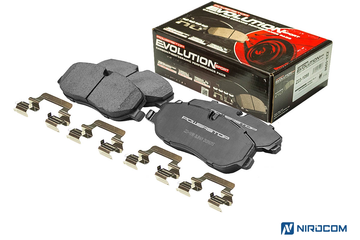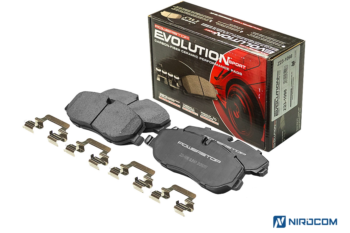 Power Stop Evolution Z23 – это керамический состав, укрепленный углеродными (карбоновыми) волокнами. На практике это высокотемпературная колодка, стойкая к износу, с повышенным коэффициентом трения