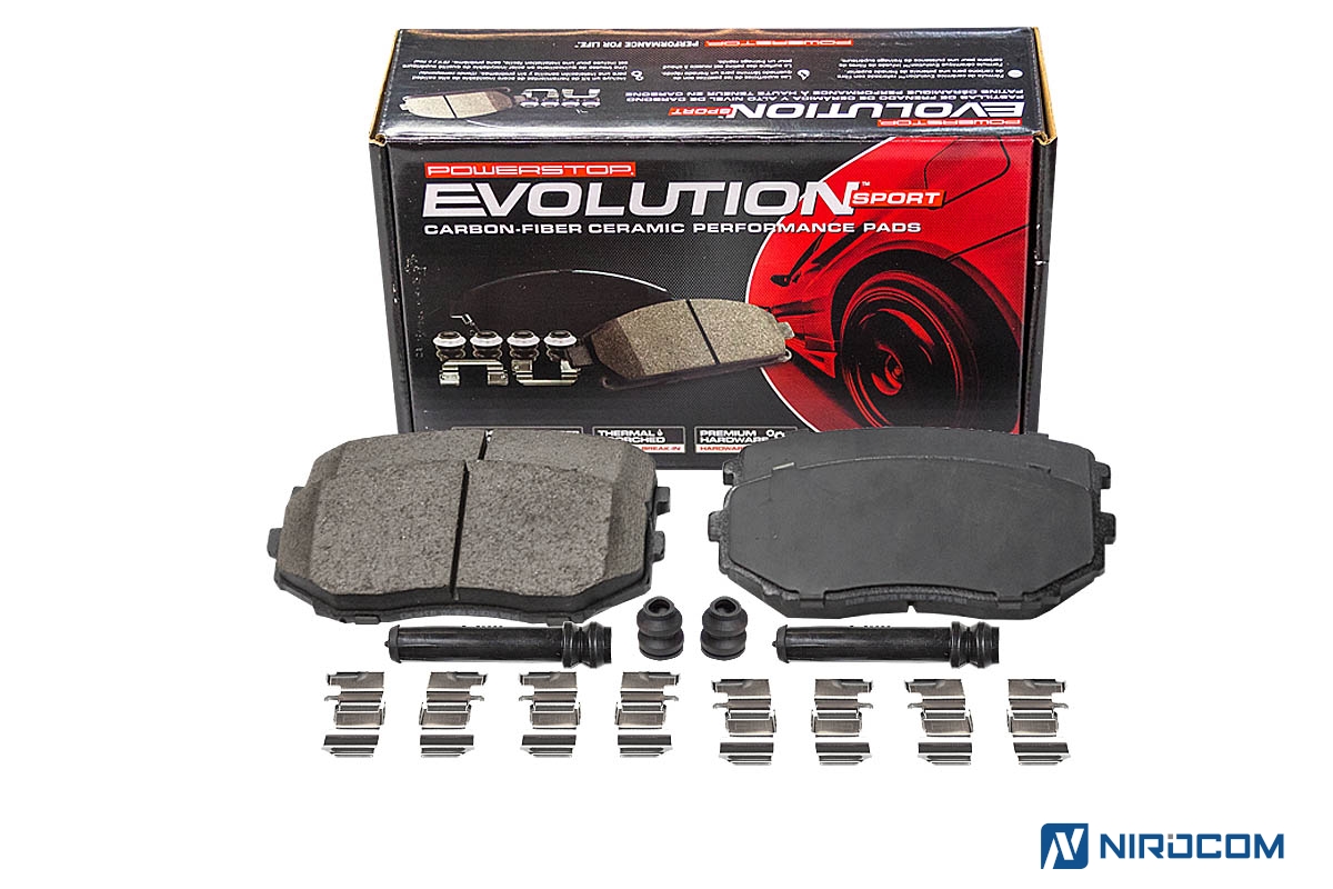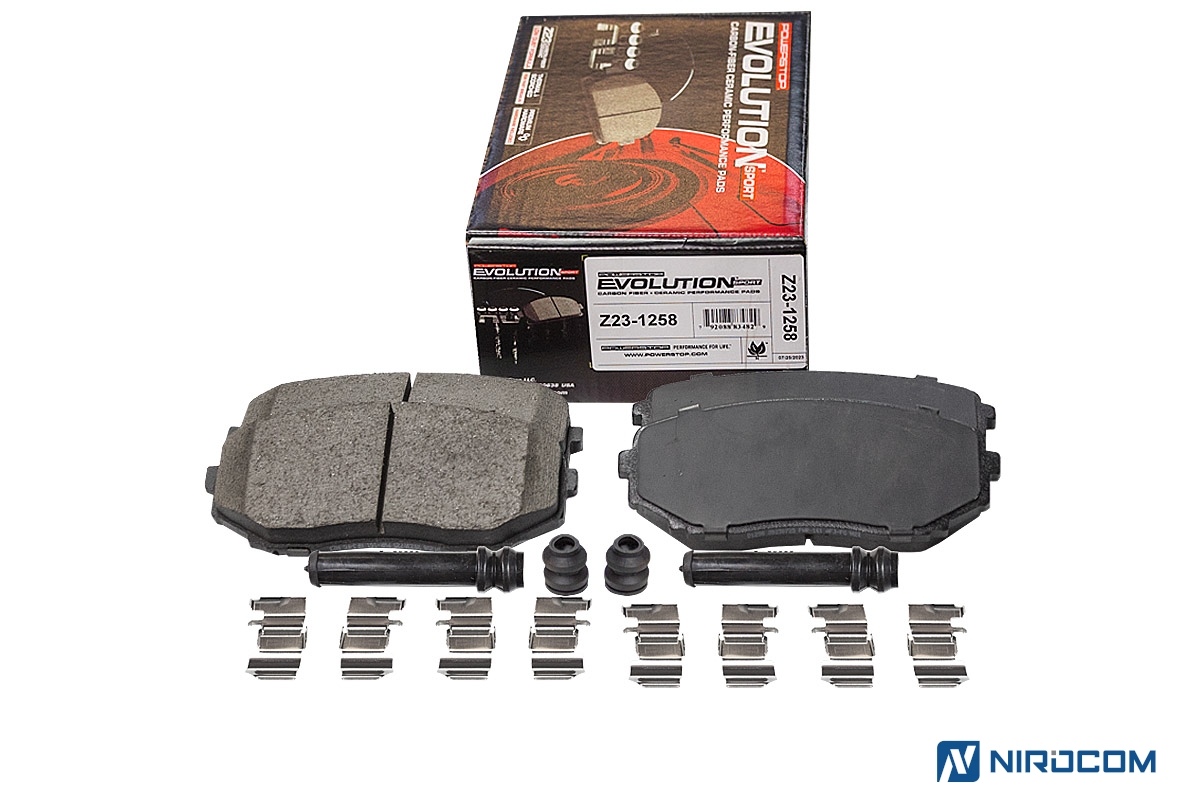 Power Stop Evolution Z23 – это керамический состав, укрепленный углеродными (карбоновыми) волокнами. На практике это высокотемпературная колодка, стойкая к износу, с повышенным коэффициентом трения