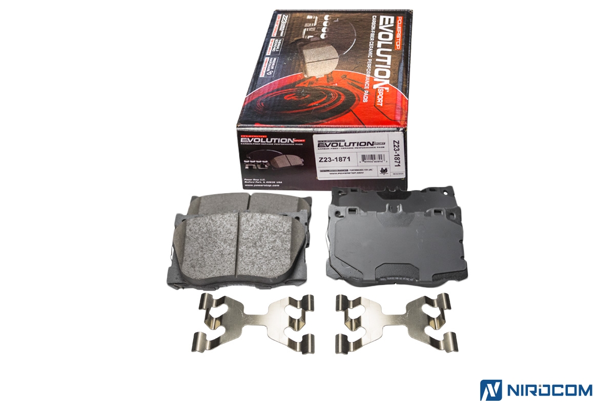 Power Stop Evolution Z23 – это керамический состав, укрепленный углеродными (карбоновыми) волокнами. На практике это высокотемпературная колодка, стойкая к износу, с повышенным коэффициентом трения