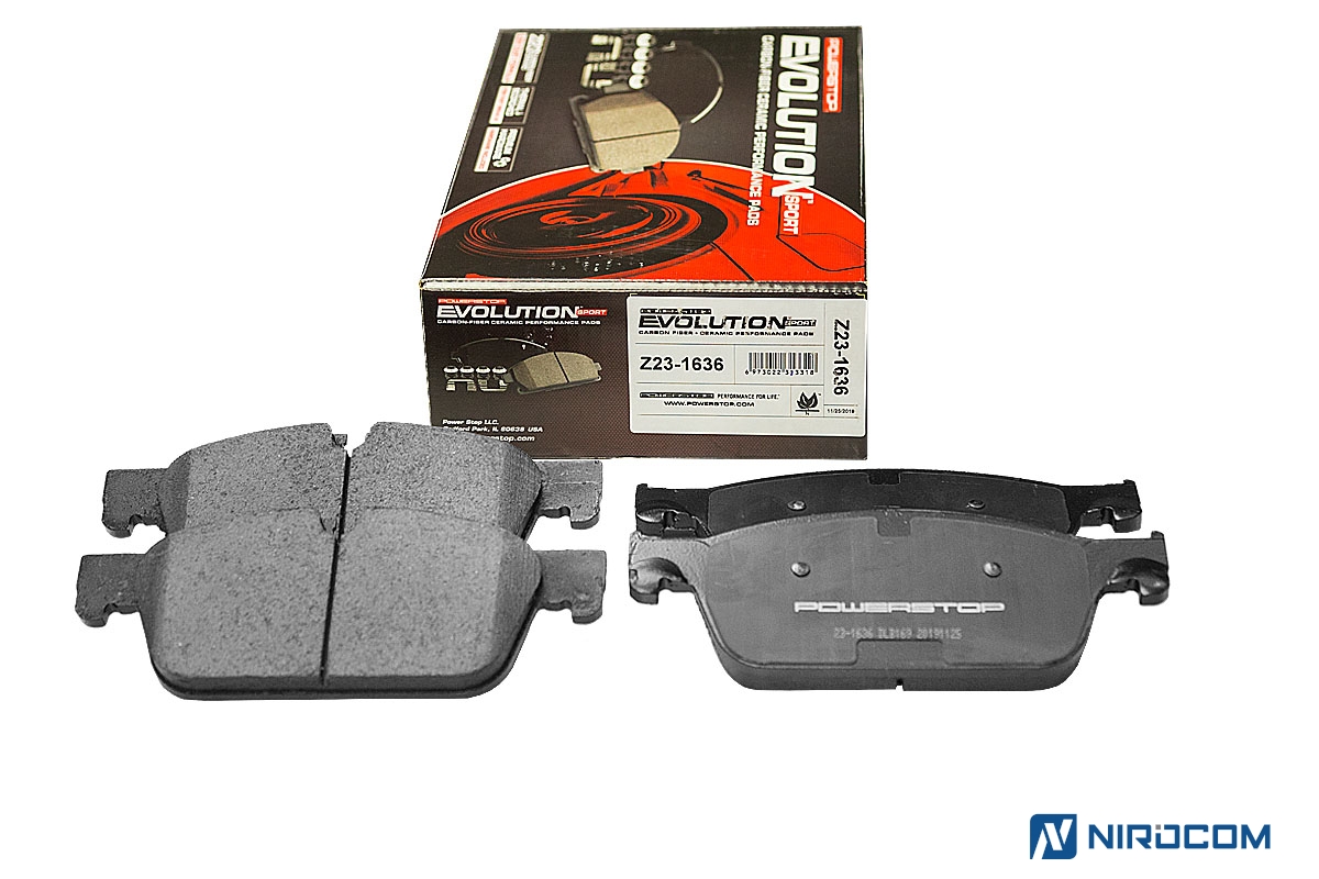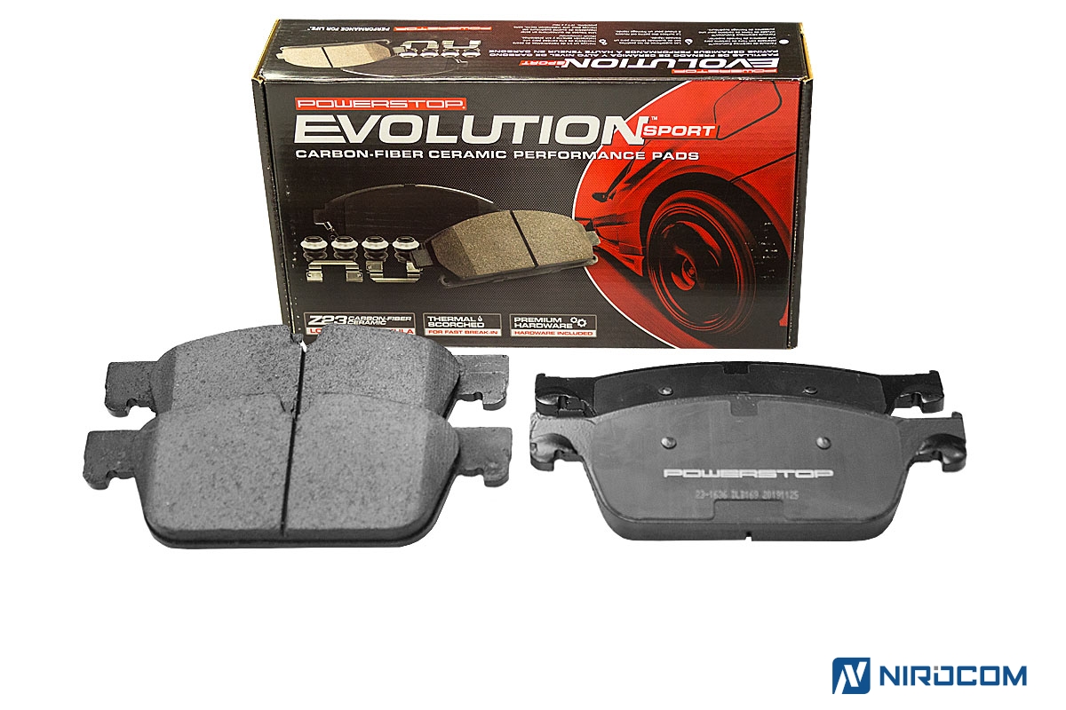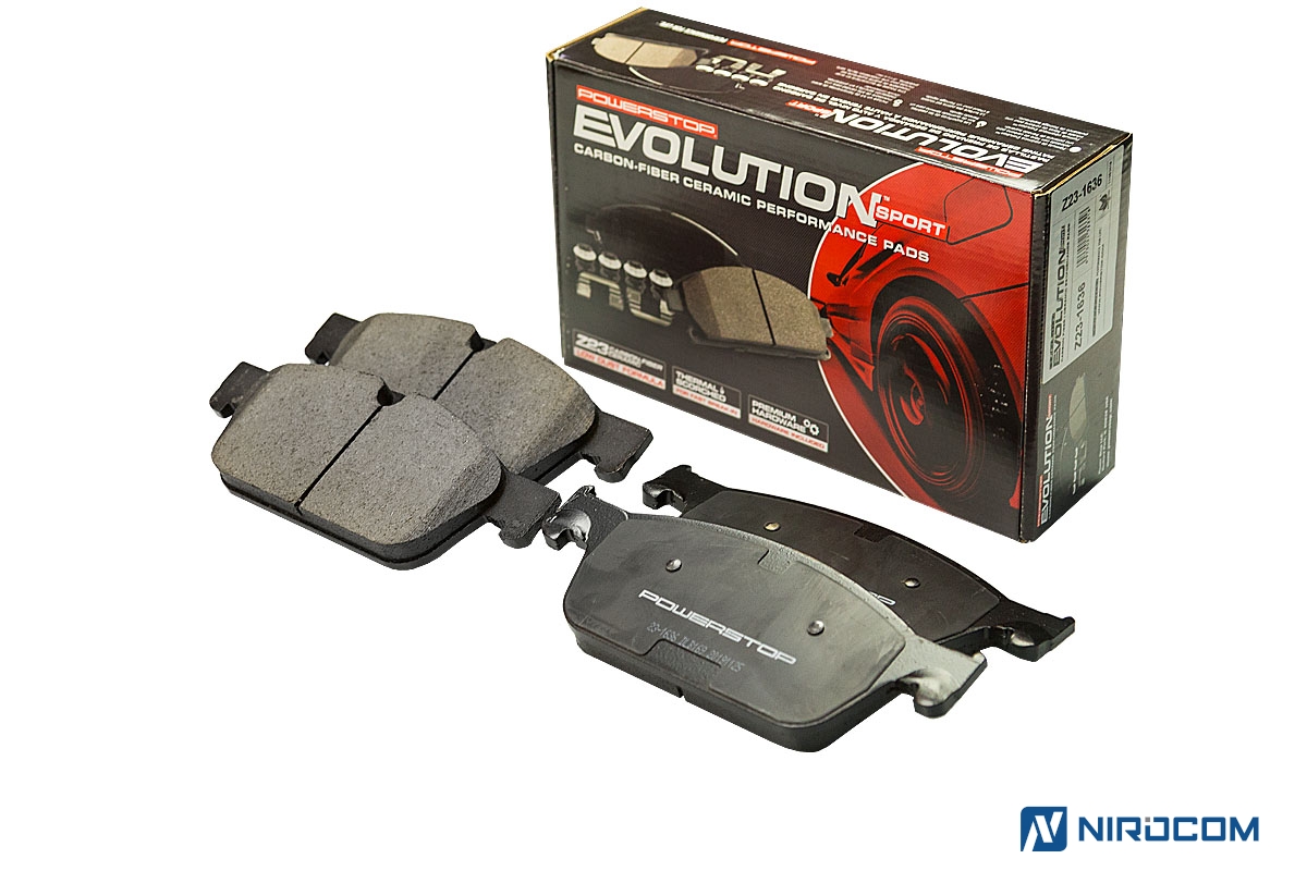 Power Stop Evolution Z23 – это керамический состав, укрепленный углеродными (карбоновыми) волокнами. На практике это высокотемпературная колодка, стойкая к износу, с повышенным коэффициентом трения
