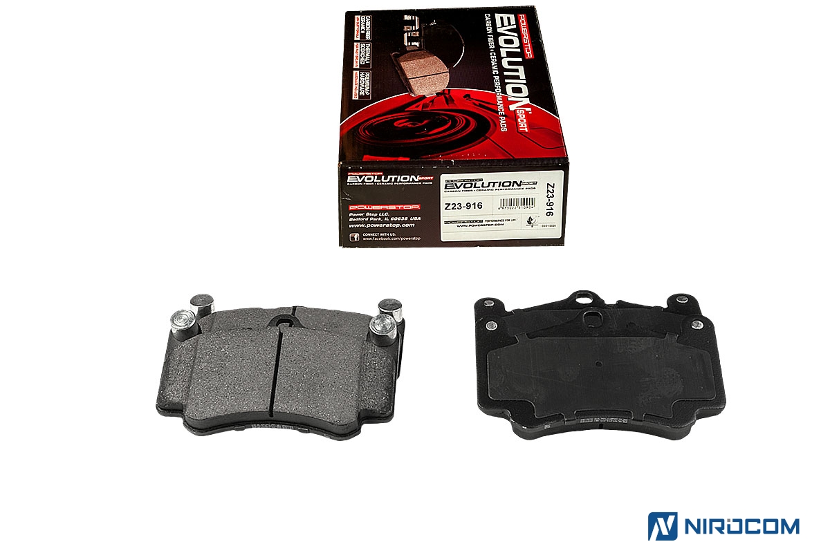 Power Stop Evolution Z23 – это керамический состав, укрепленный углеродными (карбоновыми) волокнами. На практике это высокотемпературная колодка, стойкая к износу, с повышенным коэффициентом трения