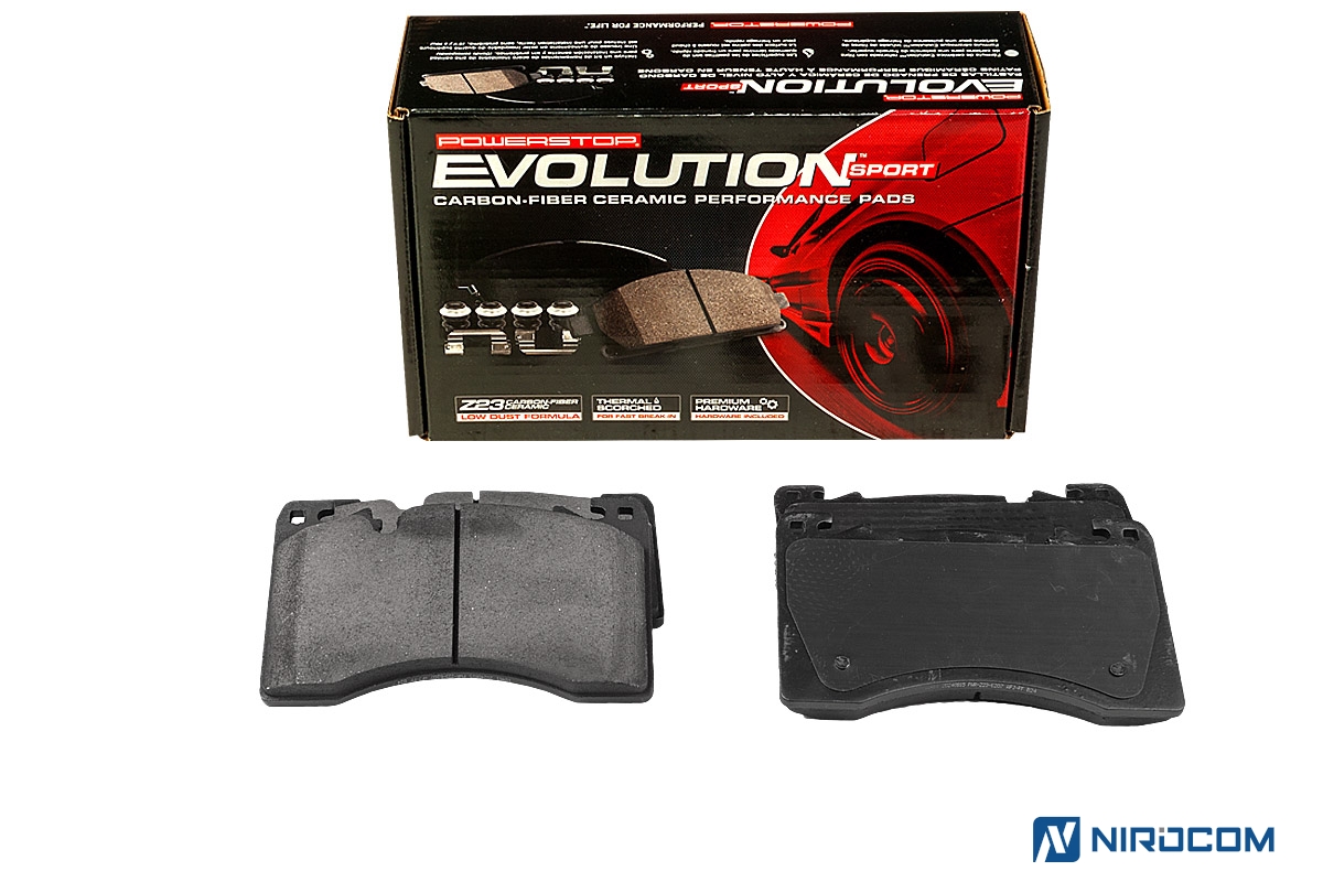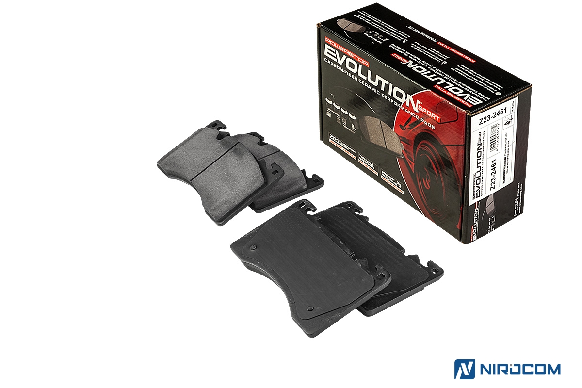 Power Stop Evolution Z23 – это керамический состав, укрепленный углеродными (карбоновыми) волокнами. На практике это высокотемпературная колодка, стойкая к износу, с повышенным коэффициентом трения