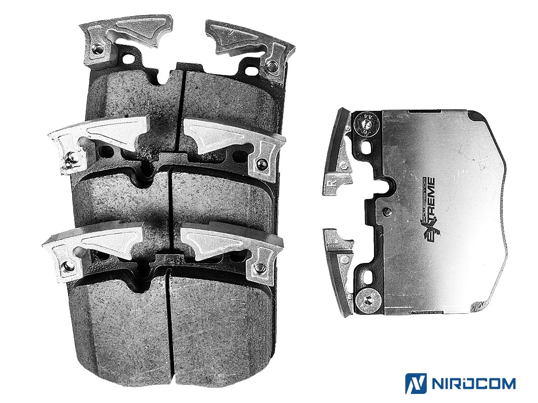 Шестипоршневые суппорты обычно имеют три внешних и три внутренних поршня. Также как и четырехпоршневые суппорты, они имеют неподвижную конструкцию без скобы. На внешней стороне такого суппорта будет видно три выступа под три внешних поршня.